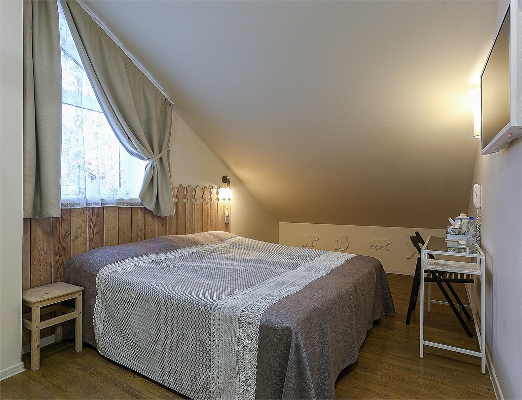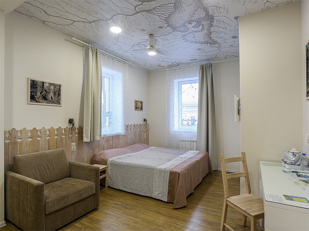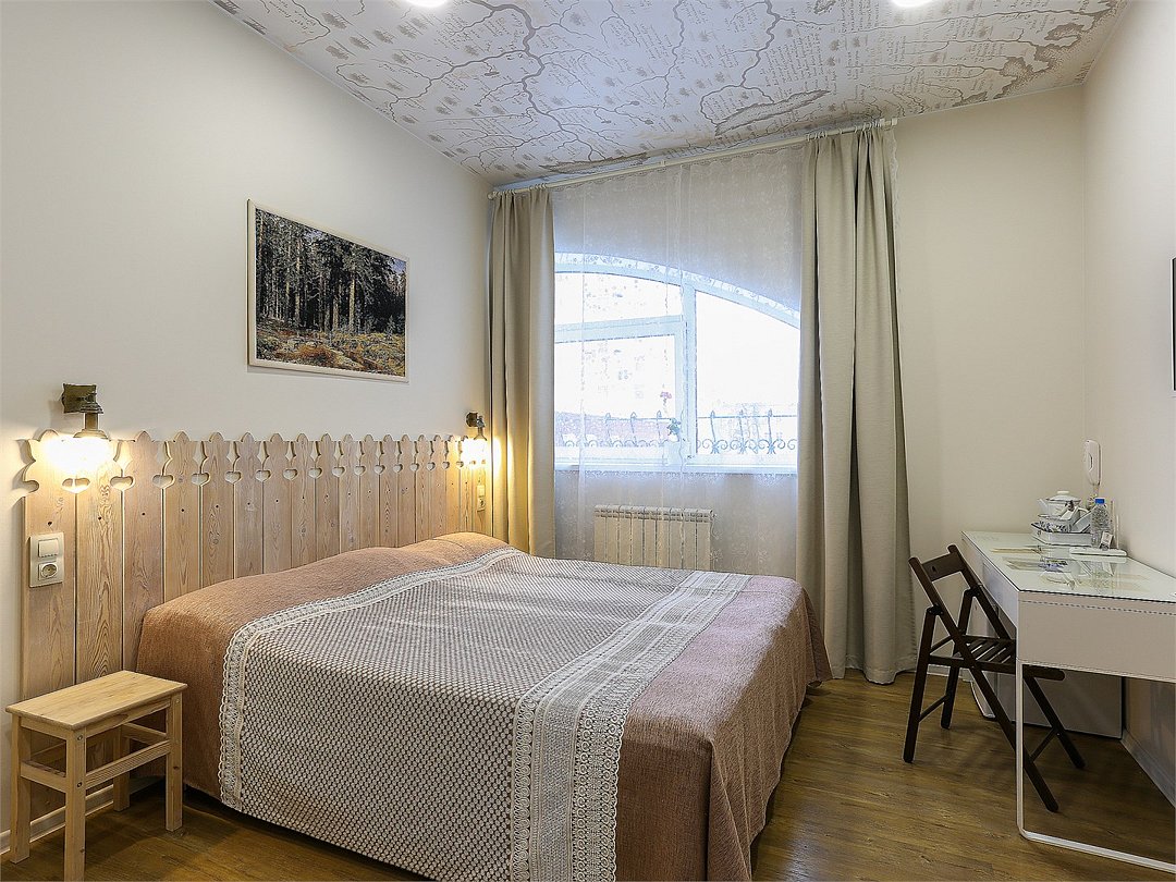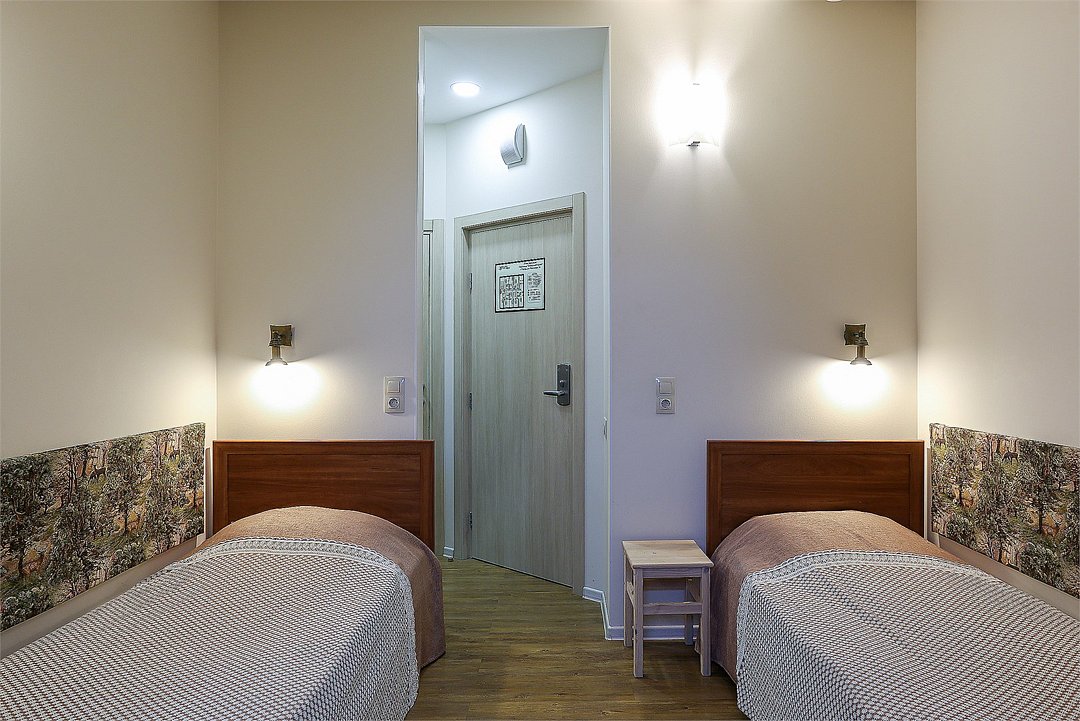 Общей площадью 15-18 м² оборудован электронными замками, удобной комнатой с открытым гардеробом для одежды, с двумя кроватями 90*200 с ортопедическими матрасами, трансформируемыми в одну двуспальную; рабочей зоной с письменным столом; холодильником, телефоном для круглосуточной связи с сотрудниками ресепшн, кабельным телевидением, бесплатным Wi-Fi; санузлом с ванной либо душевой кабиной, полотенцами, средствами гигиены. Для любителей большего комфорта мы с удовольствием предоставим халаты, расширенный набор туалетных принадлежностей за разумную дополнительную оплату. Завтрак континентальный предоставляется в Ланч-боксах с 7.00 до 10.00. Состав Ланч-бокса: Каша, выпечка, блины с начинкой, фруктовый сок в индивидуальной упаковке, чай/кофе натуральный, сливки для кофе.Услуги и удобства