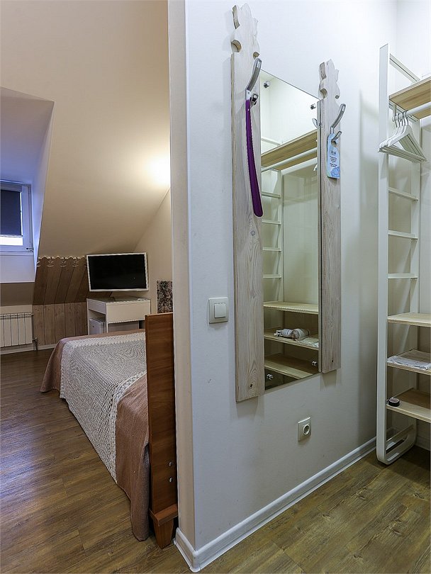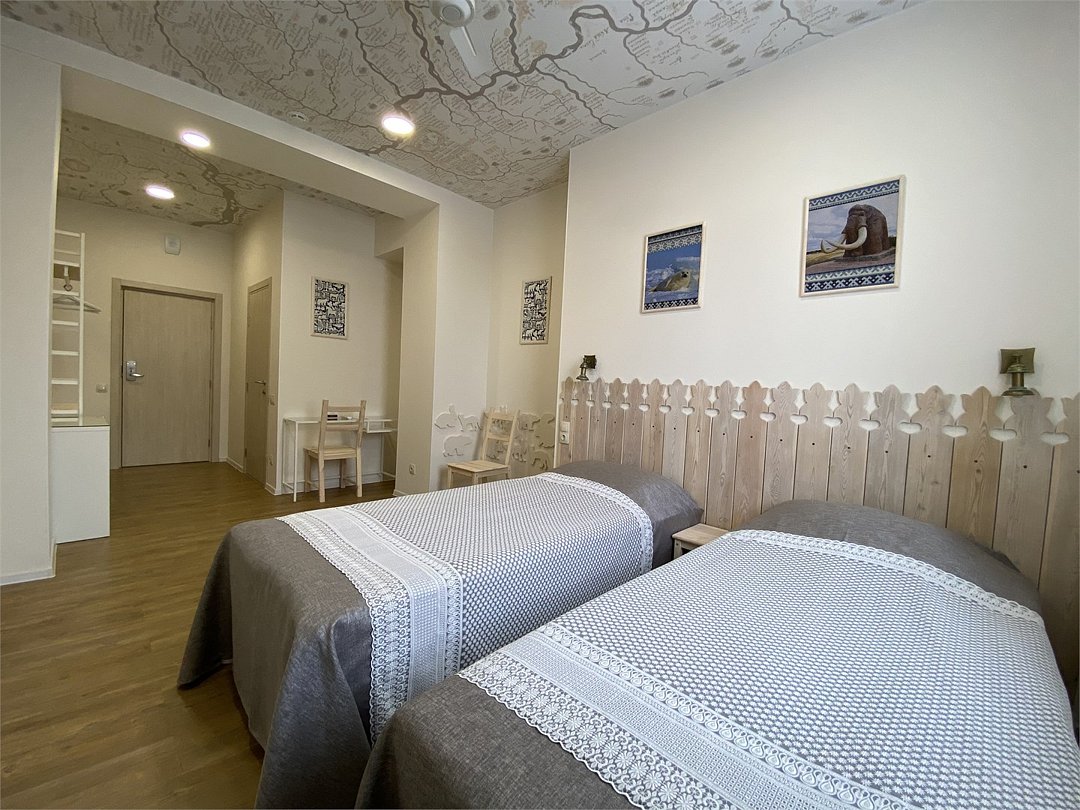 Общей площадью 16-20 м² оборудован электронными замками, удобной комнатой с открытым гардеробом для одежды, с двумя кроватями 90*200 с ортопедическими матрасами, трансформируемыми в одну двуспальную; рабочей зоной с письменным столом; холодильником, телефоном для круглосуточной связи с сотрудниками ресепшн, кабельным телевидением, бесплатным Wi-Fi; санузлом с душевой кабиной, полотенцами, средствами гигиены. Для любителей большего комфорта мы с удовольствием предоставим халаты, расширенный набор туалетных принадлежностей за разумную дополнительную оплату. Завтрак континентальный предоставляется в Ланч-боксах с 7.00 до 10.00. Состав Ланч-бокса: Каша, выпечка, блины с начинкой, фруктовый сок в индивидуальной упаковке, чай/кофе натуральный, сливки для кофе.Услуги и удобства