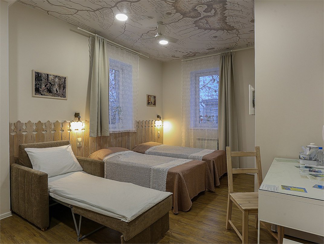 Общей площадью 19-21 м² оборудован электронными замками, удобной комнатой с открытым гардеробом для одежды, с двумя кроватями 90*200 с ортопедическими матрасами, трансформируемыми в одну двуспальную, раскладным креслом; рабочей зоной с письменным столом; холодильником, телефоном для круглосуточной связи с сотрудниками ресепшн, кабельным телевидением, бесплатным Wi-Fi; санузлом с ванной либо душевой кабиной, полотенцами, средствами гигиены. Для любителей большего комфорта мы с удовольствием предоставим халаты, расширенный набор туалетных принадлежностей за разумную дополнительную оплату. Завтрак континентальный предоставляется в Ланч-боксах с 7.00 до 10.00. Состав Ланч-бокса: Каша, выпечка, блины с начинкой, фруктовый сок в индивидуальной упаковке, чай/кофе натуральный, сливки для кофе.Услуги и удобства