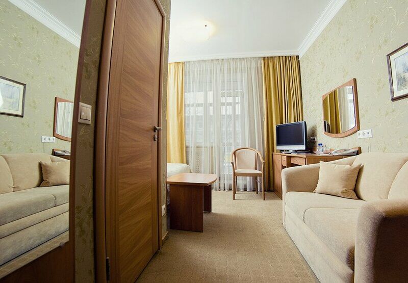 Отель находится в 7-ми этажном жилом здании, возвышающемся на улице Советская. Небольшой жилой фонд предлагает гостям 9 номеров разных категорий. Везде предусмотрена собственная ванная комната, есть кондиционер и телевизор.