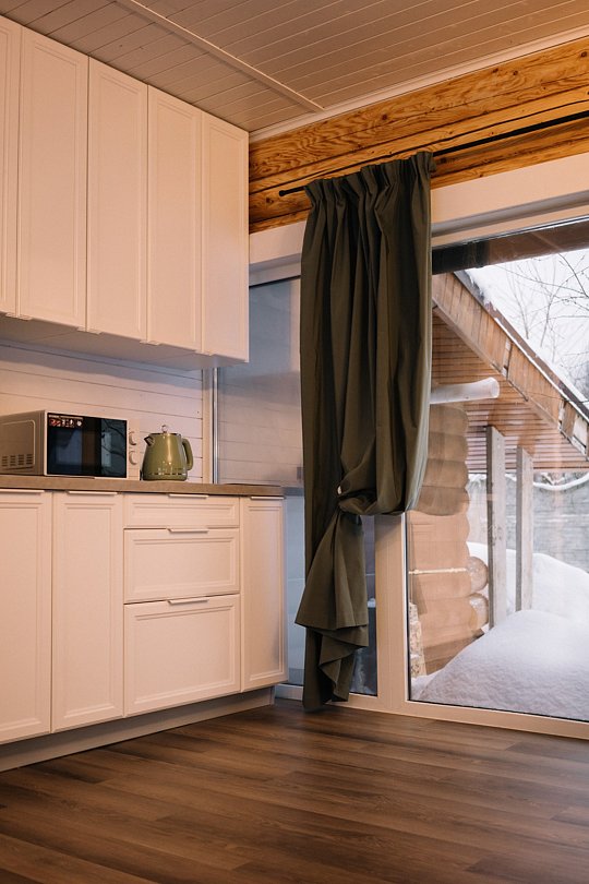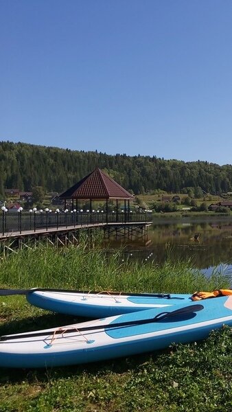 На территории отдыхающие смогут посетить подогреваемый бассейн, русскую баню или финскую сауну, а также устроить барбекю на мангальной зоне. Летом работает прокат велосипедов и сапов, а зимой можно арендовать снегоход. А отдохнуть от городской суеты поможет прогулка по лесу или рыбалка.