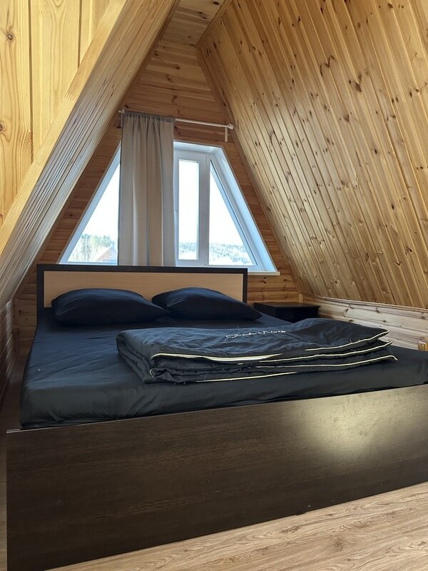 На 2 этаже: двуспальная кровать, камин, ванная.