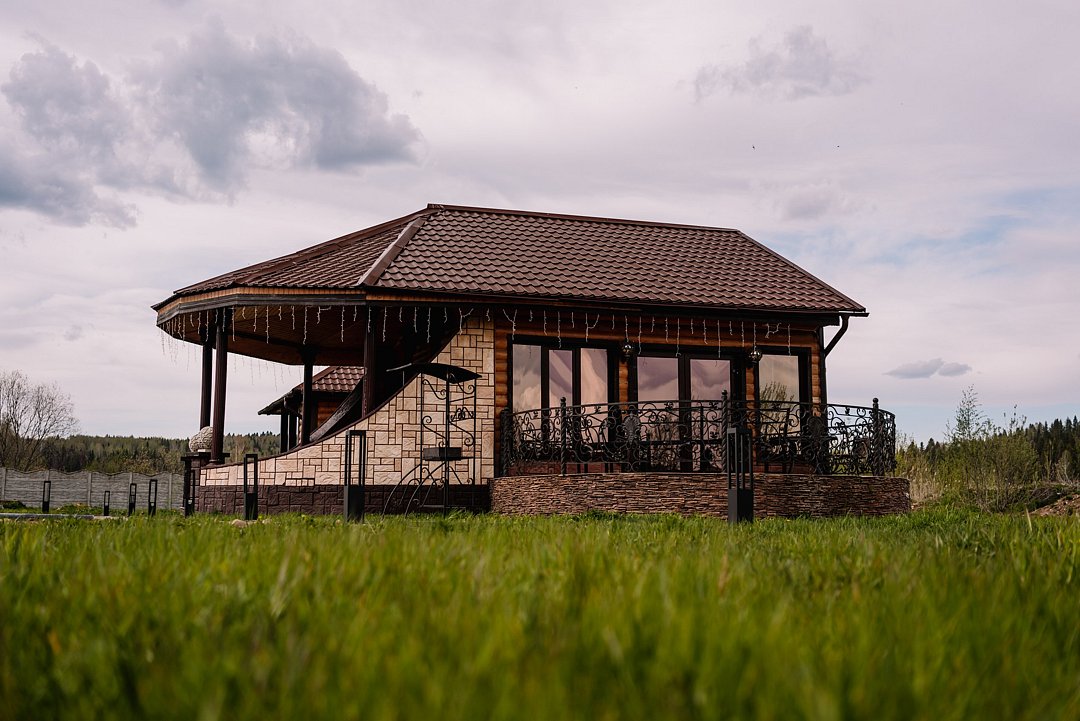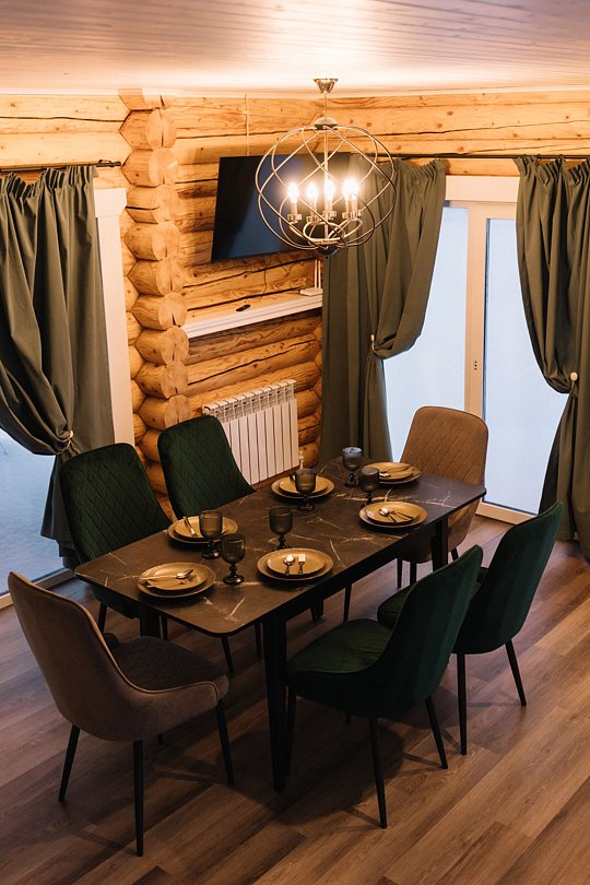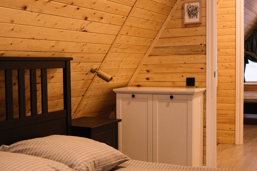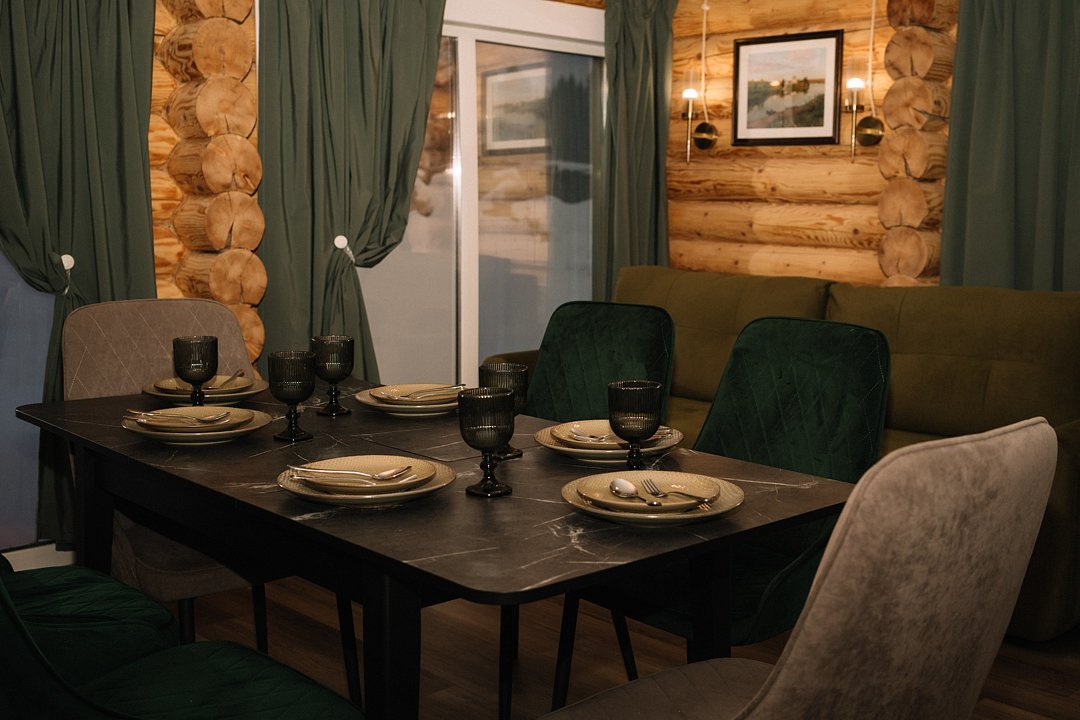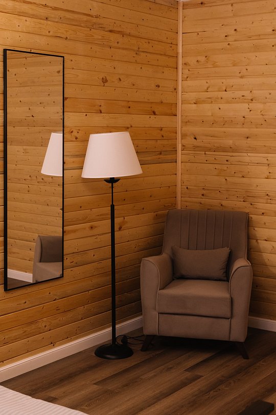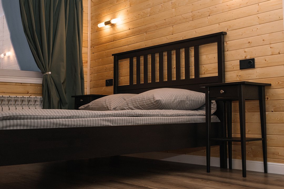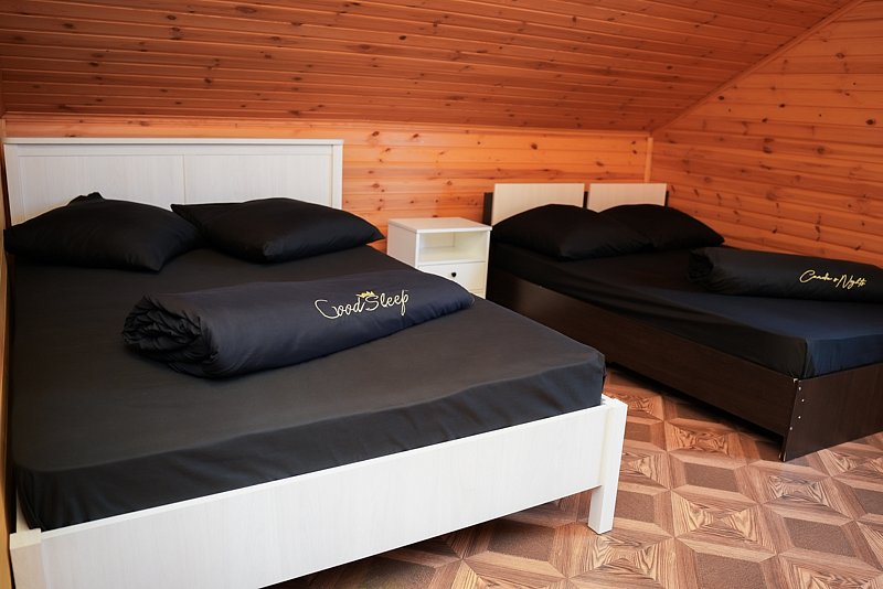 Для гостей подготовлены уютные коттеджи разной вместимости со всем необходимым для комфортного загородного отдыха. В каждом оборудованы комфортные спальные места, имеется доступ к Wi-Fi, а также есть собственная ванная комната и кухня.