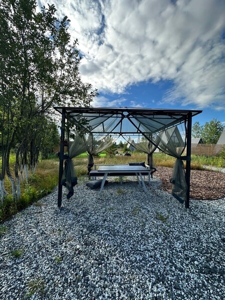 Проведите свое мероприятие в теплой уютной беседке вместимостью 40 человек. Здесь вы можете отметить День Рождения, корпоратив, свадьбу, невторкинг, мастер-классы и другие мероприятия. Вы можете размеситься в беседке, не бронируя дом. В беседке есть кухня с холодильником, санузел, а также мангальная зона на террасе.