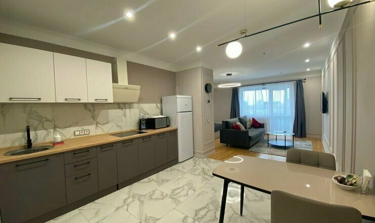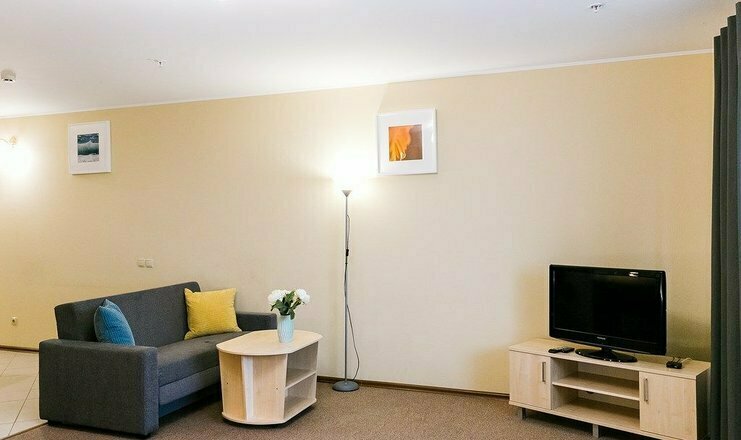 Постояльцам представлены однокомнатные и двухкомнатные апартаменты, оснащенные жилой зоной и кухней, где можно готовить самостоятельно. Также из удобств - застекленная лоджия с панорамным видом на город и индивидуальная ванная комната.