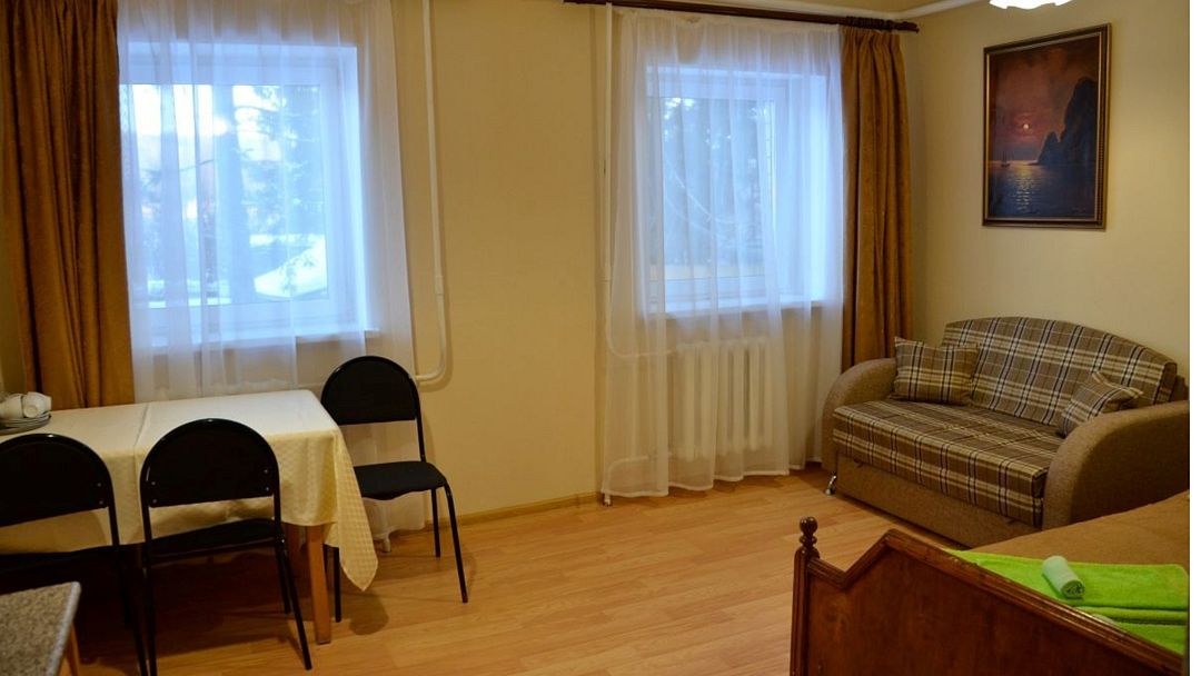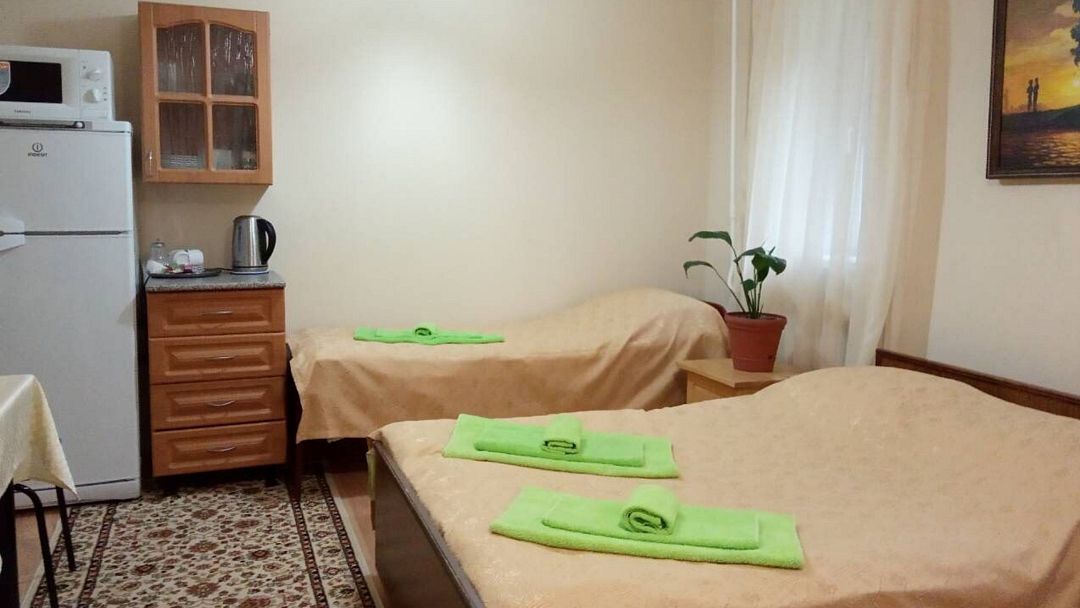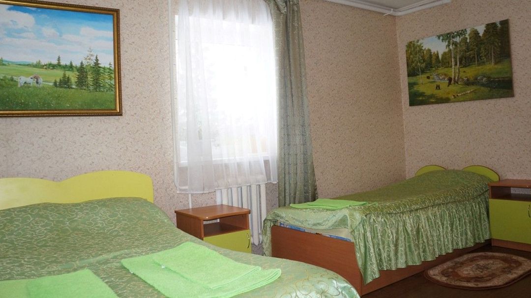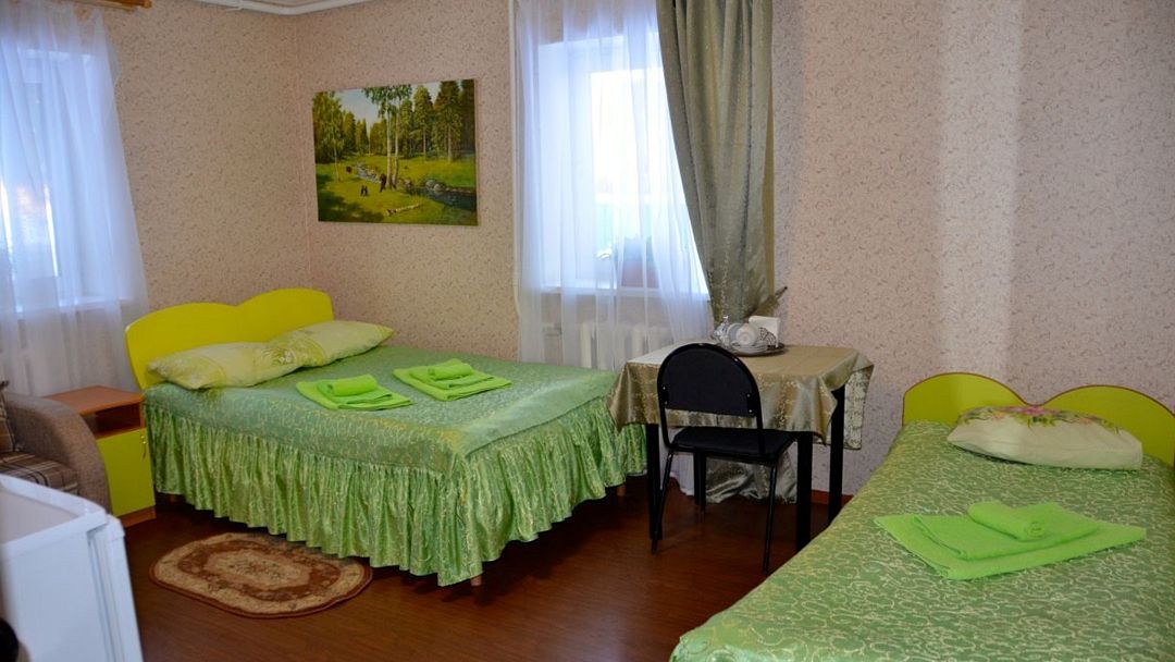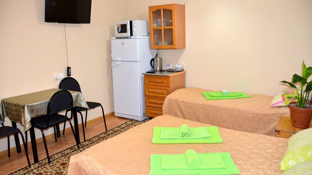 телевизор, микроволновая печь, двуспальная кровать, две односпальные кровати, вешалки, зеркало, комод, набор посуды, информационная карта, меню, чайник, отопление, общая ванная комната, вид во двор, стаканы, столовые приборы, стул, стол, внутренний телефон, мини-холодильник, кухонный уголок, уборка номера, вода из артезианской скважины, без питомцевВ гостиничном номере