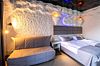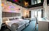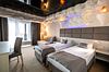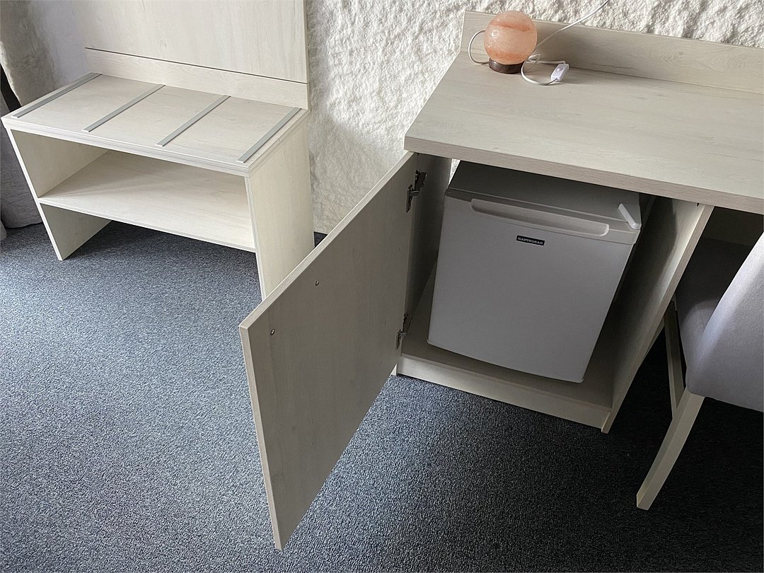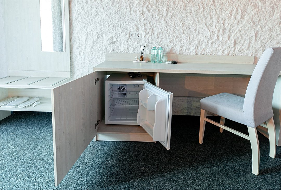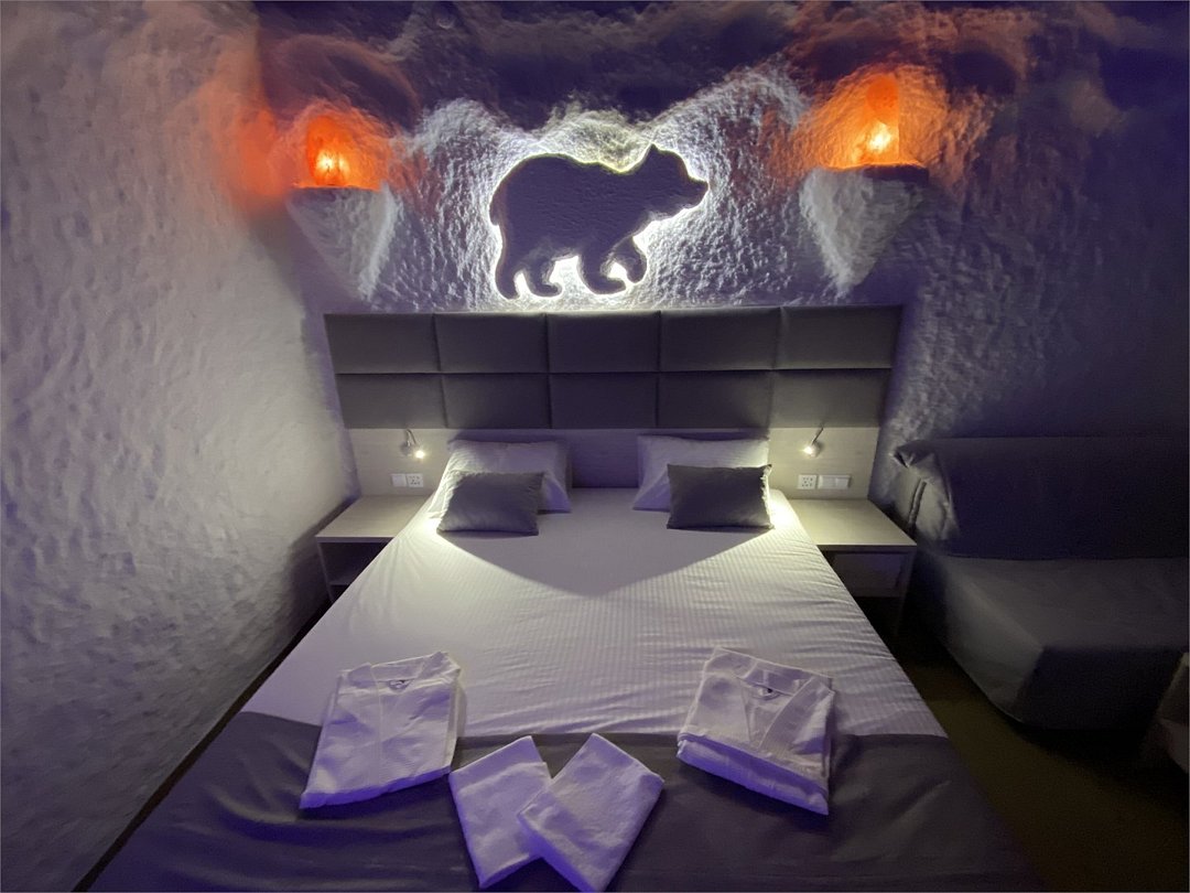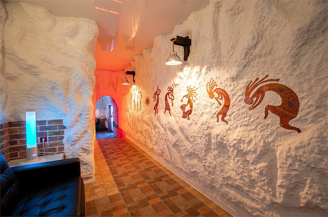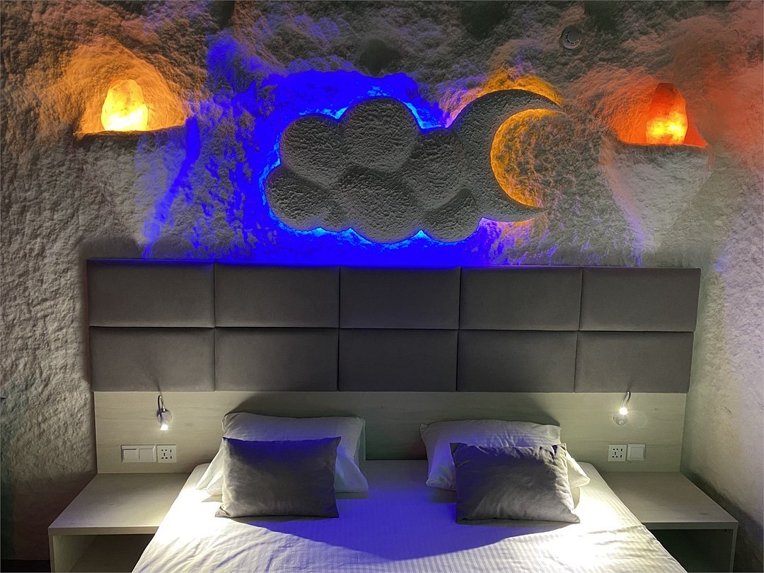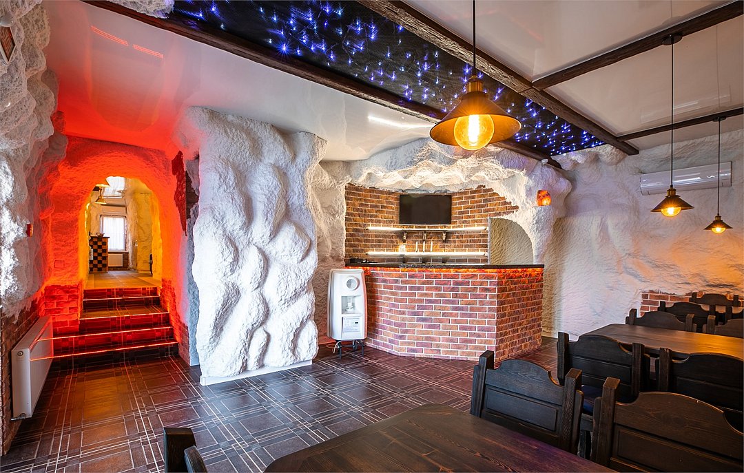 Наши соляные номера имеют разное дизайнерское исполнение, которое не оставит равнодушным. Соляной номер оснащен ванной со всеми необходимыми средствами (фен, розетка, гигиен. душ, зеркало с подсветкой, увеличивающее зеркало и т.п) имеется панорамное окно. Термоэлектрический холодильник (бар) даст Вам спокойно выспаться ночью без шума, а шторы blackout не дадут солнечному свету вас разбудить с утра. На полу приятный коммерческий теплый ковролин, панорамные окна с видом на бассейнУслуги и удобства