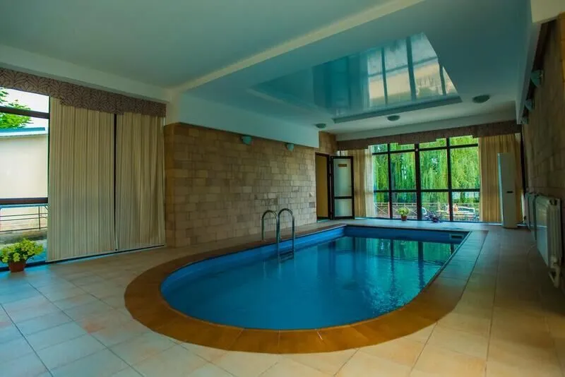- просторный зал с бассейном и панорамным видом;