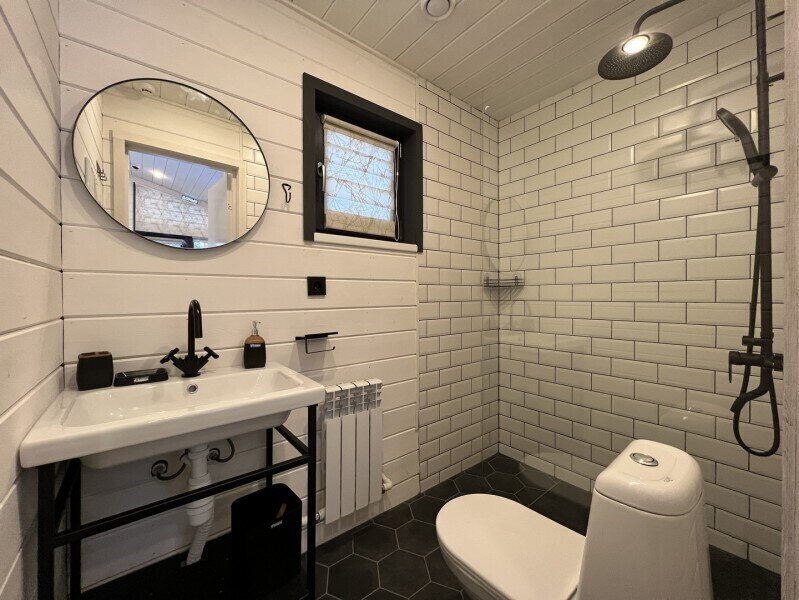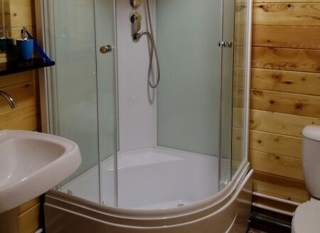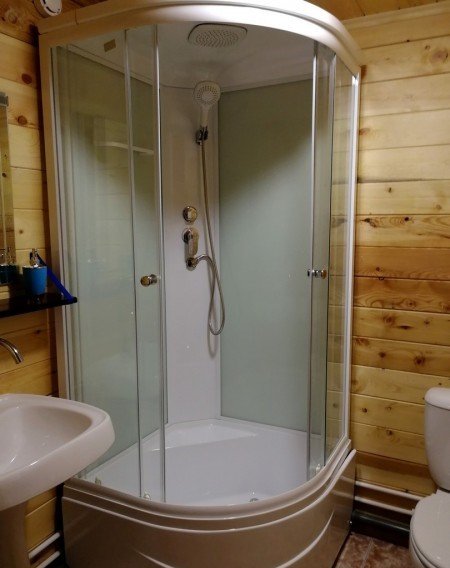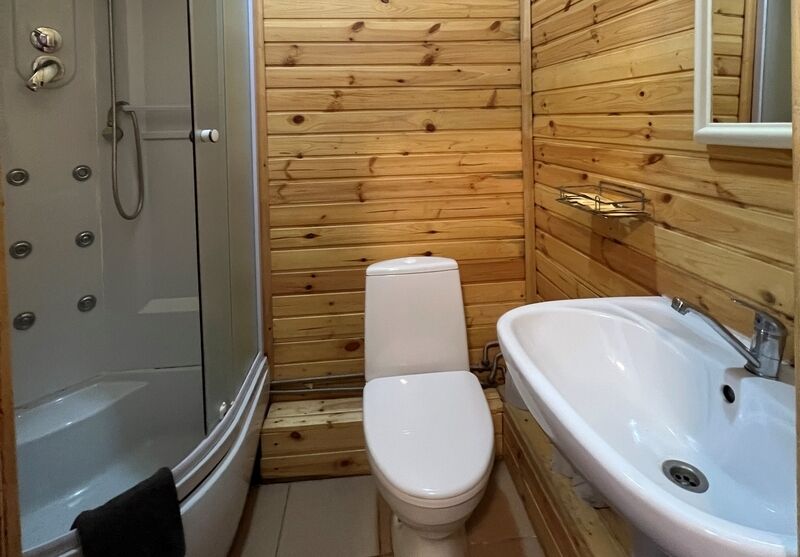 Санузел с душем, крытая терраса-балкон, мангальная зона.