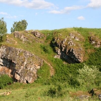 Камень с необычным названием Собачьи Ребра представляет собой небольшую, невысокую известняковую скалу в виде наклонных плит. Эти наклонные пласты людям напомнили собачьи ребра, вот и возникло такое название.