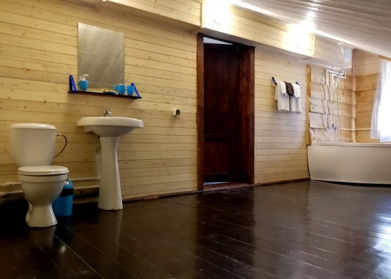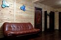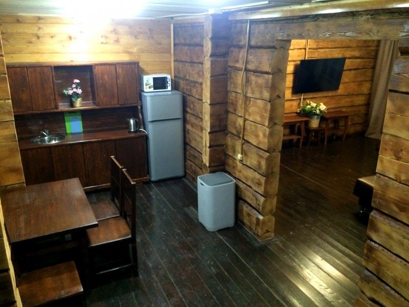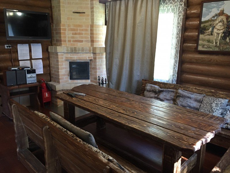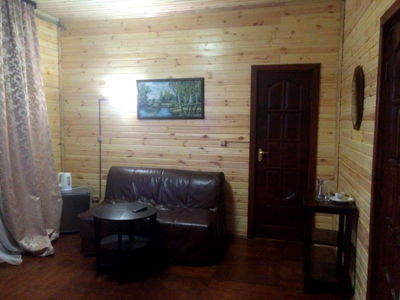 Двухкомнатный номер с прихожей и камином — двуспальная кровать, диван, камин, стол, стулья, туалет и душ в номере, холодильник, телевизор + спутниковый ресивер, электрочайник, шкаф, зеркало.