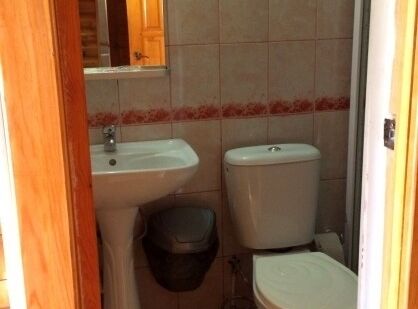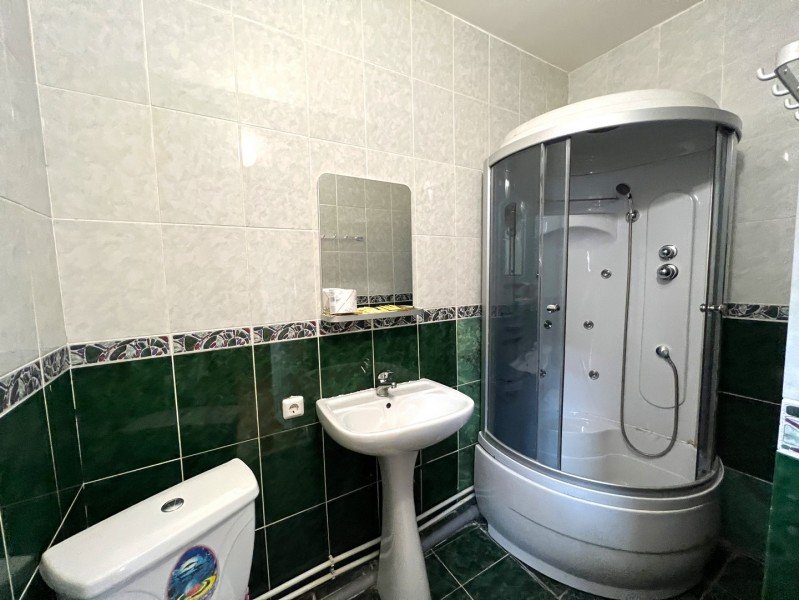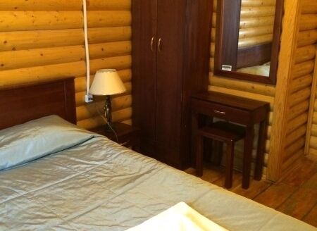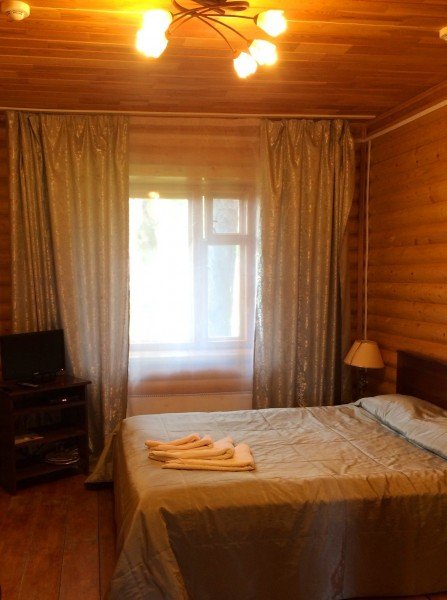 Однокомнатный номер с прихожей — двуспальная кровать, туалет и душ в номере, холодильник, телевизор + спутниковый ресивер, электрочайник, шкаф, зеркало.