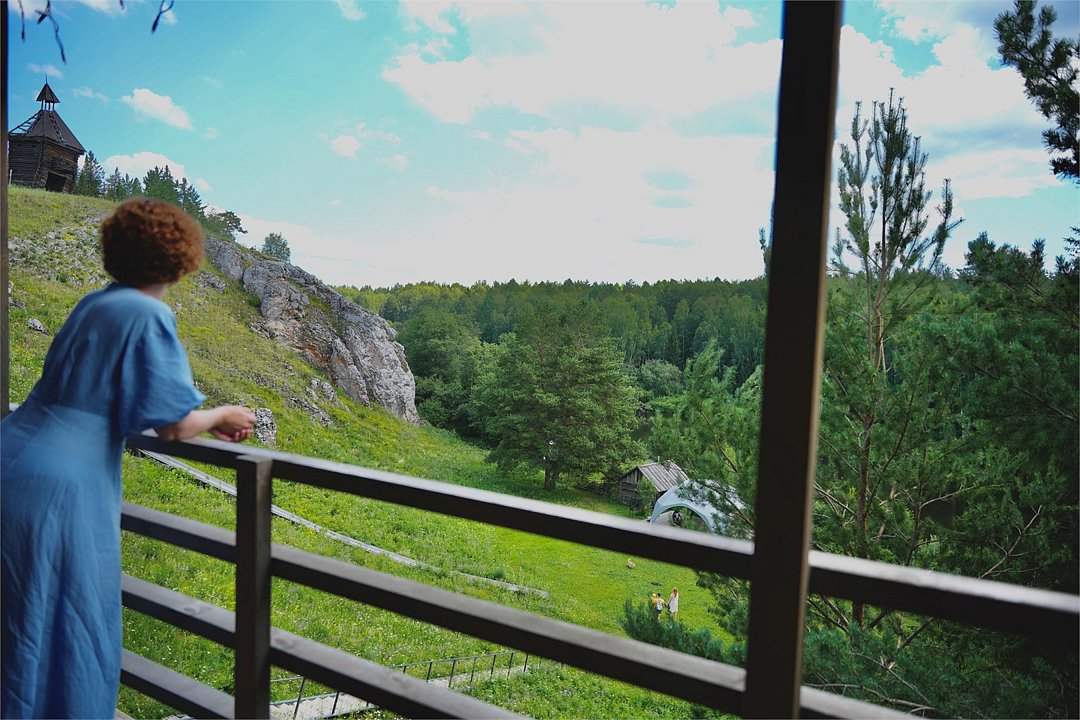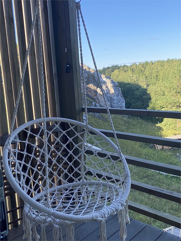 "Парящий дом" с панорамным окном в ванной комнате и потрясающим видом на лес и реку Чусовую. Уединенный, уютный и необыкновенно романтичный! Комфортен для размещения 2-х гостей. Состоит из комнаты, санузла (с душем) и отдельной ванной комнаты с панорамным остеклением. - В комнате: двуспальная кровать, кресло-качалка, обеденная зона, оборудованная чайником, микроволновой печью, холодильником и комплектом посуды на 2 персоны. - Современный санузел с душем (есть дополнительный тропический душ). Мыло, гель для душа, шампунь, индивидуальные зубные наборы-включены в стоимость. - Отдельная ванная комната с панорамным видом на реку и лес-"изюминка" проекта. ВАЖНОЕ ПРАВИЛО: - ЛЮБАЯ МУЗЫКА НА УЛИЦЕ ЗАПРЕЩЕНА - ШТРАФ 10 000 РУБ. - ЛЮБОЙ ШУМ ПОСЛЕ 23:00 ЗАПРЕЩЕН - ШТРАФ 10 000 РУБ.Услуги и удобства