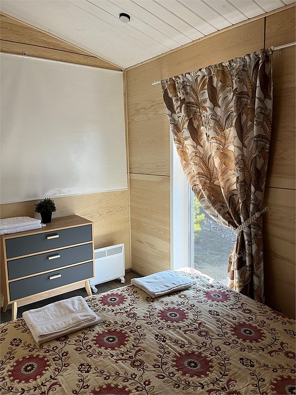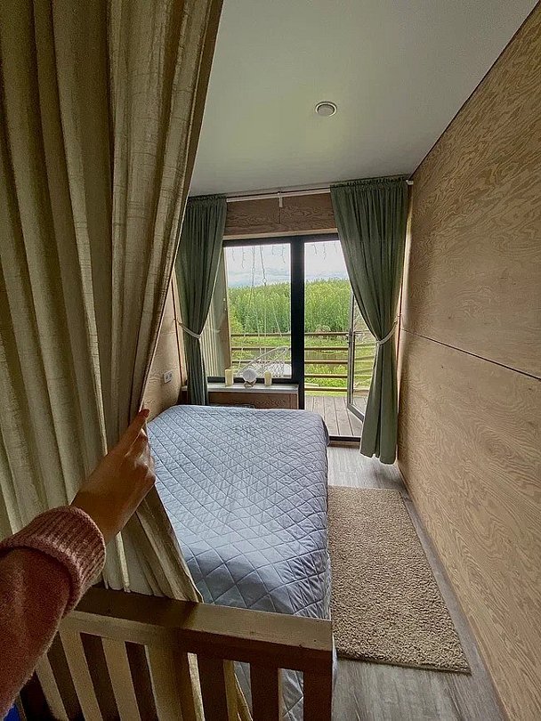 Панорамные дома на горе получили названия «Кипрей», «Полынь», «Зверобой» и «Пижма» в честь трав, растущих в округе. Дома комфортны для размещения 2-4 человек, имеют все необходимое для комфортного проживания. При входе попадаем в кухню/столовую/гостиную, где есть: - обеденная зона; -раскладывающийся диван, с которого открывается вид на лес и реку; -небольшая кухня с микроволновой печью, холодильником, посудой на 4 человек. Отсюда есть дверь в спальню, где расположилась двуспальная кровать с ортопедическим матрасом и проектор для просмотра любимых фильмов Ванная комната оборудована тропическим душем✨ Заезд в 15:00, выезд в 12:00 ВАЖНОЕ ПРАВИЛО: - ЛЮБАЯ МУЗЫКА НА УЛИЦЕ ЗАПРЕЩЕНА - ШТРАФ 10 000 РУБ. - ЛЮБОЙ ШУМ ПОСЛЕ 23:00 ЗАПРЕЩЕН - ШТРАФ 10 000 РУБ.Услуги и удобства