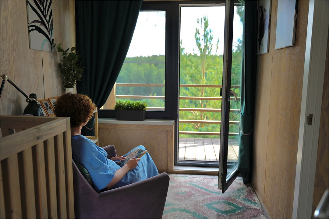 Панорамные дома на горе получили названия «Кипрей», «Полынь», «Зверобой» и «Пижма» в честь трав, растущих в округе. Дома комфортны для размещения 2-4 человек, имеют все необходимое для комфортного проживания. При входе попадаем в кухню/столовую/гостиную, где есть: - обеденная зона; -раскладывающийся диван, с которого открывается вид на лес и реку; -небольшая кухня с микроволновой печью, холодильником, посудой на 4 человек. Отсюда есть дверь в спальню, где расположилась двуспальная кровать с ортопедическим матрасом и проектор для просмотра любимых фильмов Ванная комната оборудована тропическим душем. Заезд в 15:00, выезд в 12:00 ВАЖНОЕ ПРАВИЛО: - ЛЮБАЯ МУЗЫКА НА УЛИЦЕ ЗАПРЕЩЕНА - ШТРАФ 10 000 РУБ. - ЛЮБОЙ ШУМ ПОСЛЕ 23:00 ЗАПРЕЩЕН - ШТРАФ 10 000 РУБ.Услуги и удобства