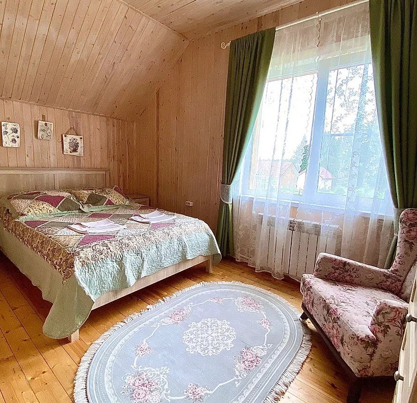 телевизор, Wi-Fi, холодильник, настольные лампы, плита для приготовления пищи, микроволновая печь, санузел, банные полотенца, диван, кресла, тумбы, стулья, шкаф для одежды, вешалки, журнальный столик, обеденный стол, зеркало, комод, кухня, чайник, мягкая мебель, обеденная зона, отопление, душ, три двуспальные кровати, кресло, вид во двор, кухонная утварь, мангал, диван-кровать, раскладной диван, вид на лес, можно с питомцамиВ коттедже
