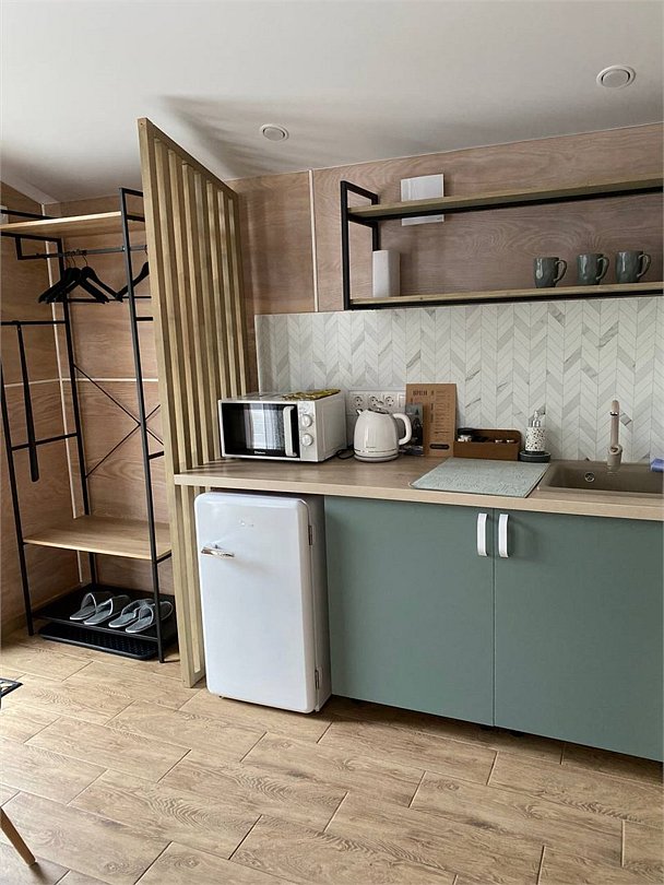 Новый эко-дом на горе – Шалфей. Влюбляет в себя с первого взгляда! Нежные бежево-зеленые оттенки, природные материалы в отделке, забота о гостях – в каждой детали. - Дом подойдет для комфортного размещения 2-4-х человек. - Просторная кухня-гостиная (диван-кровать, зона кухни с холодильником, чайником и микроволновой печью, большой обеденный стол и вся необходимая посуда для 4-х персон) - Отдельная спальня с двуспальной кроватью - Современный санузел (полотенца, гель для душа, шампунь-входят в стоимость) - Панорамные окна - Тишина и уединение - Парковка (отдельный заезд, автомобиль будет рядом с домом) Шалфей идеально подойдет для пары или семьи с детьми. Рядом – эко-тропа, лес, скалы, живописные виды. Декорации Свердловской киностудии. Ресторан "Карасик" ВАЖНОЕ ПРАВИЛО: - ЛЮБАЯ МУЗЫКА НА УЛИЦЕ ЗАПРЕЩЕНА - ШТРАФ 10 000 РУБ. - ЛЮБОЙ ШУМ ПОСЛЕ 23:00 ЗАПРЕЩЕН - ШТРАФ 10 000 РУБ.Услуги и удобства