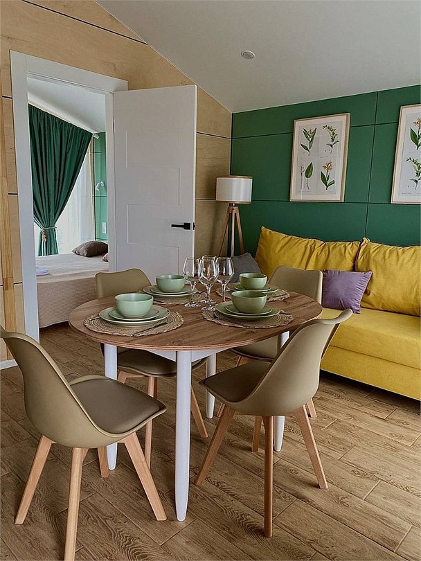 КОТТЕДЖ «ОЛИВА» Небольшой, уютный домик с бархатными креслами, ставшими звездами инстаграма наших гостей. Подойдет для семьи или дружной компании до 6 человек. «ОЛИВА» ЭТО: - две спальни с большими кроватями - гостиная с раскладным диваном - полностью оборудованная кухня (техника и посуда) - столовая зона с обеденным столом для большой компании - ванная комната со всеми удобствами - плазменный телевизор - печь - уединенная терраса, оборудованная мангалом ВАЖНОЕ ПРАВИЛО: - ЛЮБАЯ МУЗЫКА НА УЛИЦЕ ЗАПРЕЩЕНА - ШТРАФ 10 000 РУБ. - ЛЮБОЙ ШУМ ПОСЛЕ 23:00 ЗАПРЕЩЕН - ШТРАФ 10 000 РУБ.Услуги и удобства