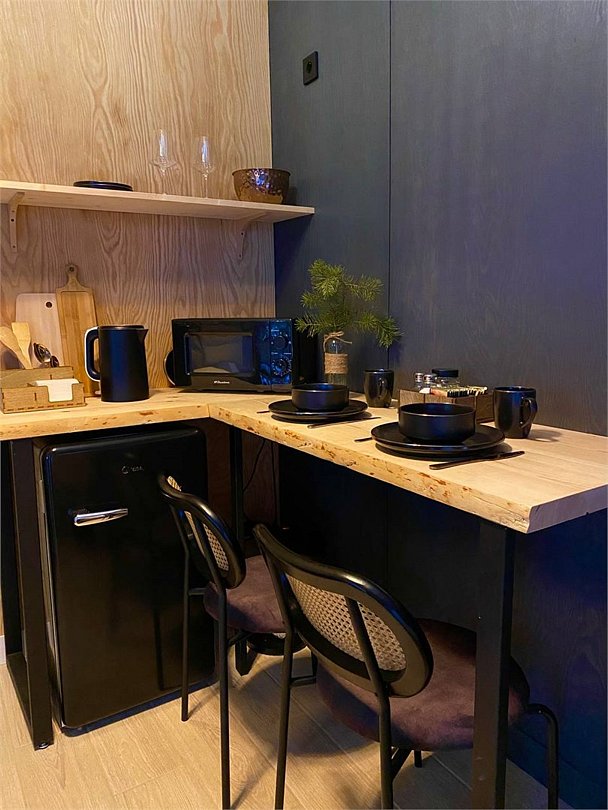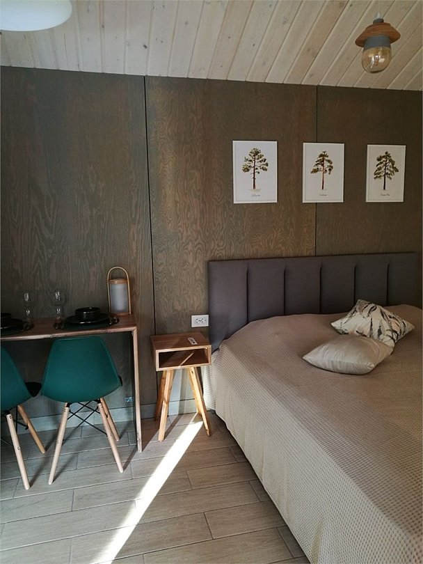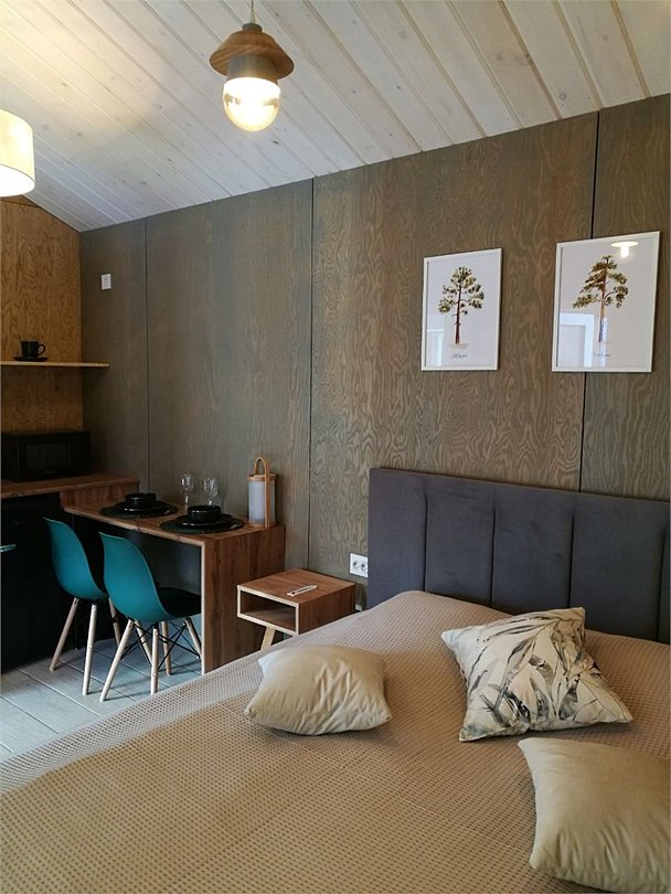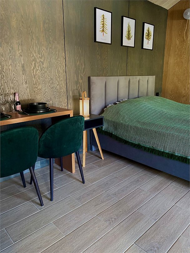 Панорамные дома на горе получили названия «Кипрей», «Полынь», «Зверобой» и «Пижма» в честь трав, растущих в округе. Дома комфортны для размещения 2-4 человек, имеют все необходимое для комфортного проживания. При входе попадаем в кухню/столовую/гостиную, где есть: - обеденная зона; -раскладывающийся диван, с которого открывается вид на лес и реку; -небольшая кухня с микроволновой печью, холодильником, посудой на 4 человек. Отсюда есть дверь в спальню, где расположилась двуспальная кровать с ортопедическим матрасом и проектор для просмотра любимых фильмов Ванная комната оборудована тропическим душем ВАЖНОЕ ПРАВИЛО: - ЛЮБАЯ МУЗЫКА НА УЛИЦЕ ЗАПРЕЩЕНА - ШТРАФ 10 000 РУБ. - ЛЮБОЙ ШУМ ПОСЛЕ 23:00 ЗАПРЕЩЕН - ШТРАФ 10 000 РУБ.Услуги и удобства
