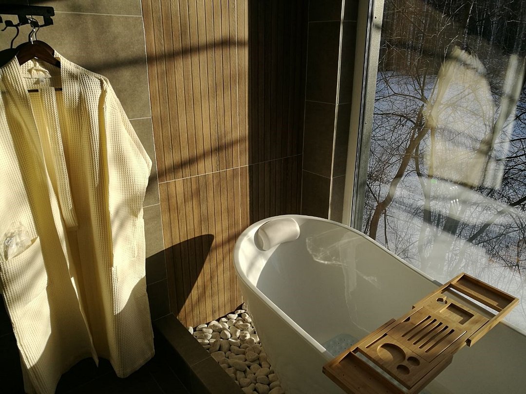 Новый дом с панорамным окном в ванной комнате и потрясающим видом на лес и реку Чусовую. Уединенный, уютный и необыкновенно романтичный! Комфортен для размещения 2-х гостей. Состоит из комнаты, санузла (с душем) и отдельной ванной комнаты с панорамным остеклением. - В комнате: двуспальная кровать, обеденная зона, оборудованная чайником, микроволновой печью, холодильником и комплектом посуды на 2 персоны. - Современный санузел с душем (есть дополнительный тропический душ). Мыло, гель для душа, шампунь, индивидуальные зубные наборы-включены в стоимость. - Отдельная ванная комната с панорамным видом на реку и лес-"изюминка" проекта. ВАЖНОЕ ПРАВИЛО: - ЛЮБАЯ МУЗЫКА НА УЛИЦЕ ЗАПРЕЩЕНА - ШТРАФ 10 000 РУБ. - ЛЮБОЙ ШУМ ПОСЛЕ 23:00 ЗАПРЕЩЕН - ШТРАФ 10 000 РУБ.Услуги и удобства