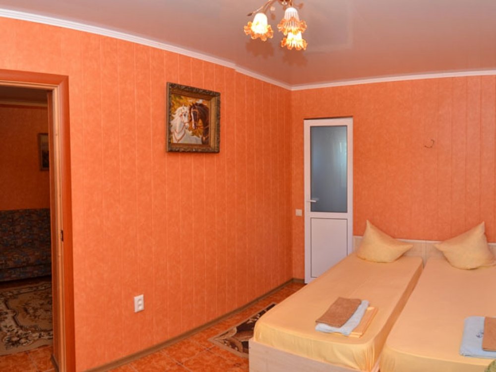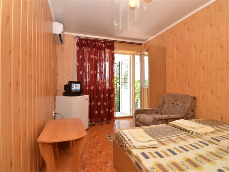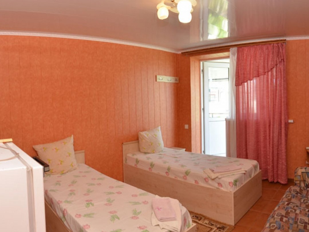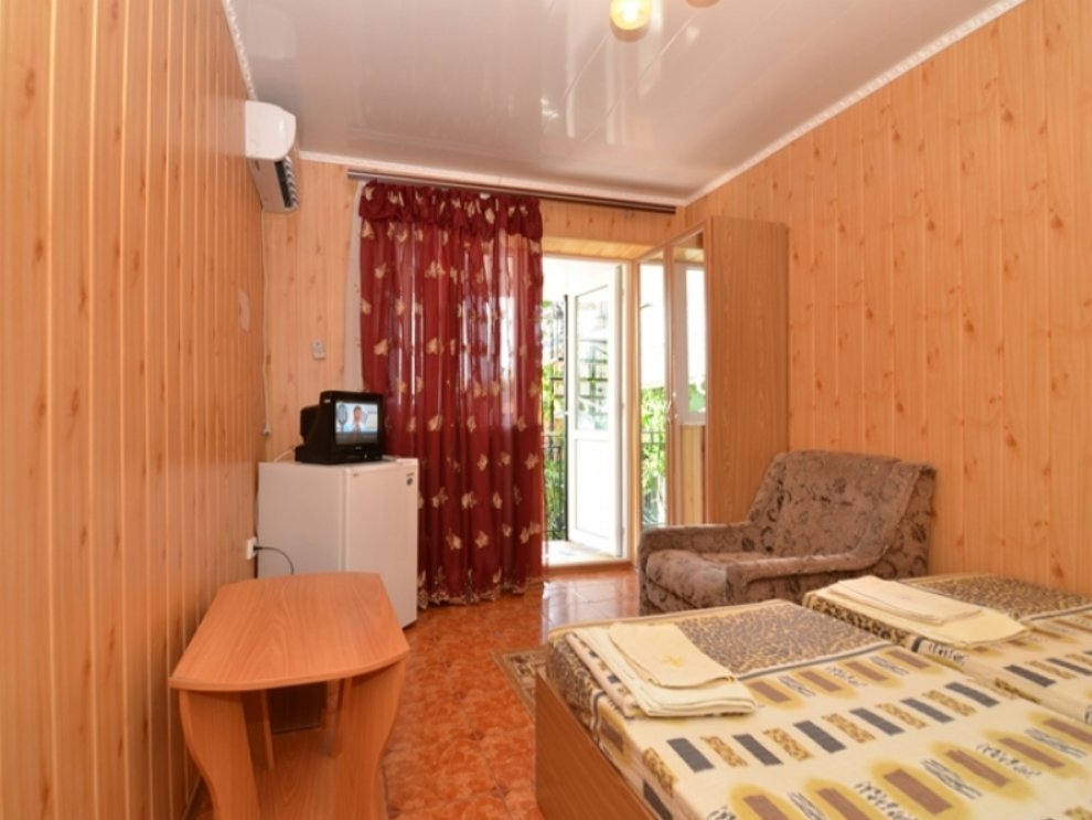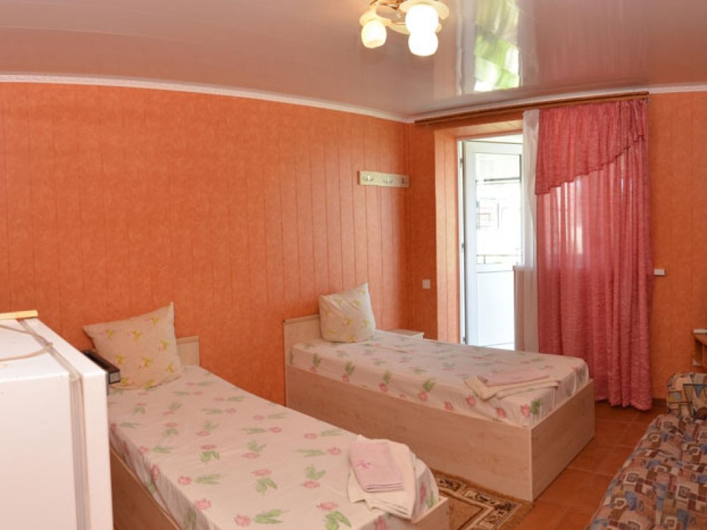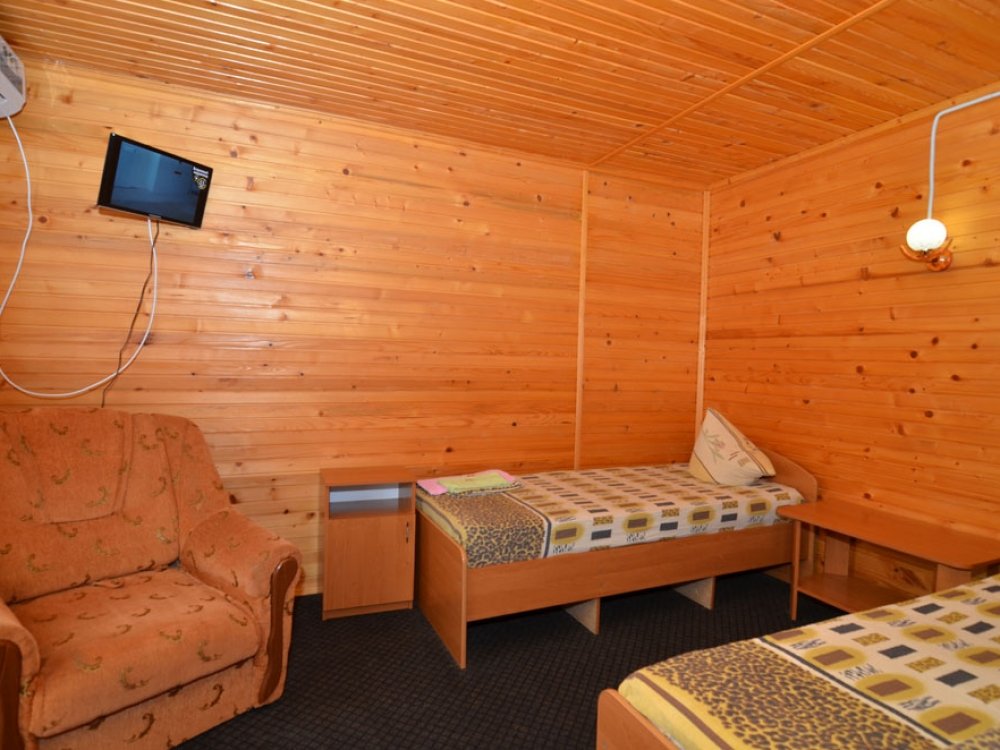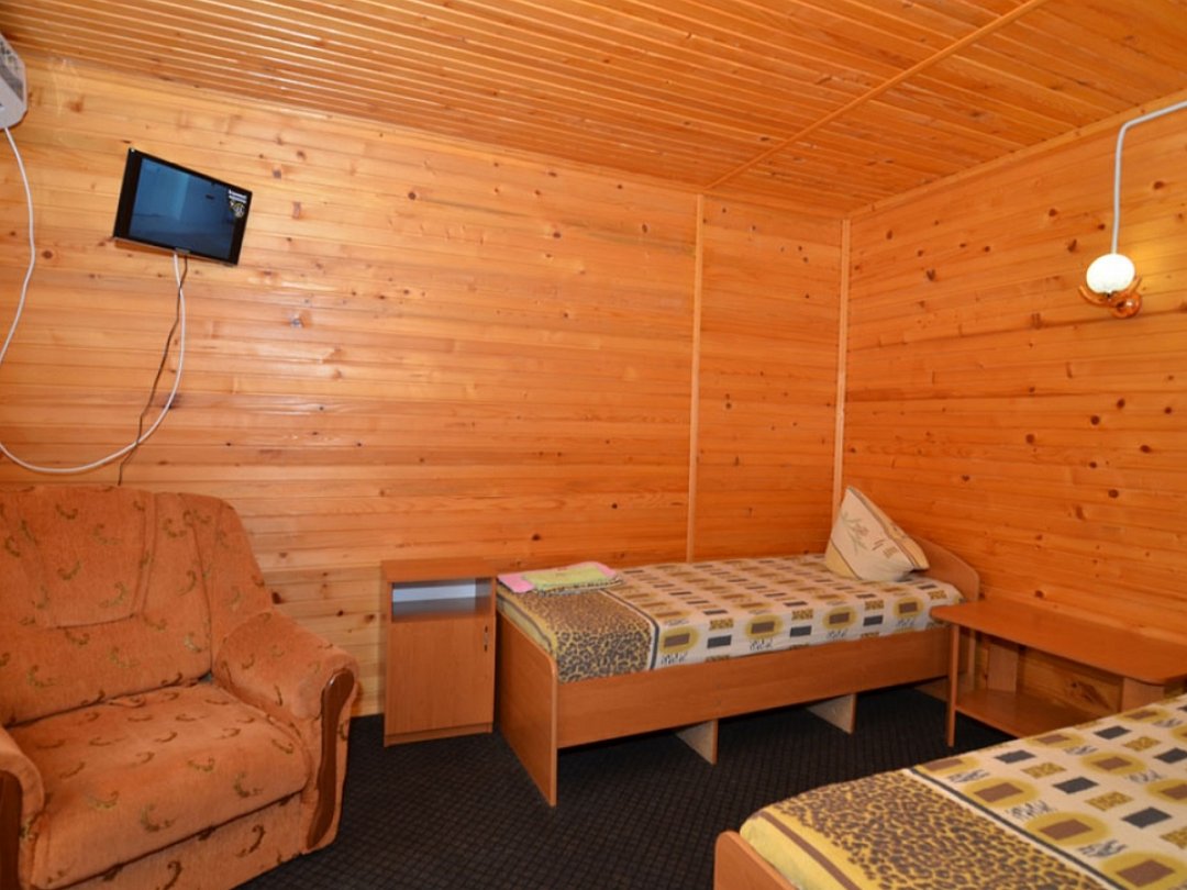 ...Площадь номера - 26 кв.м Размещение: 2 человека + 2 дополнительных места. В каждом номере категории "Эко-дом": кровати (2 раздельные или 1 двуспальная) кресло-кровать (может использоваться в качестве дополнительного места) шкаф и тумбочки журнальный столик телевизор кондиционер холодильник общий на два номера Уборка горничной - ежедневно. Смена постельного белья и полотенец - один раз в неделю или по требованию. По Вашему запросу может быть установлена детская кроватка.В номере