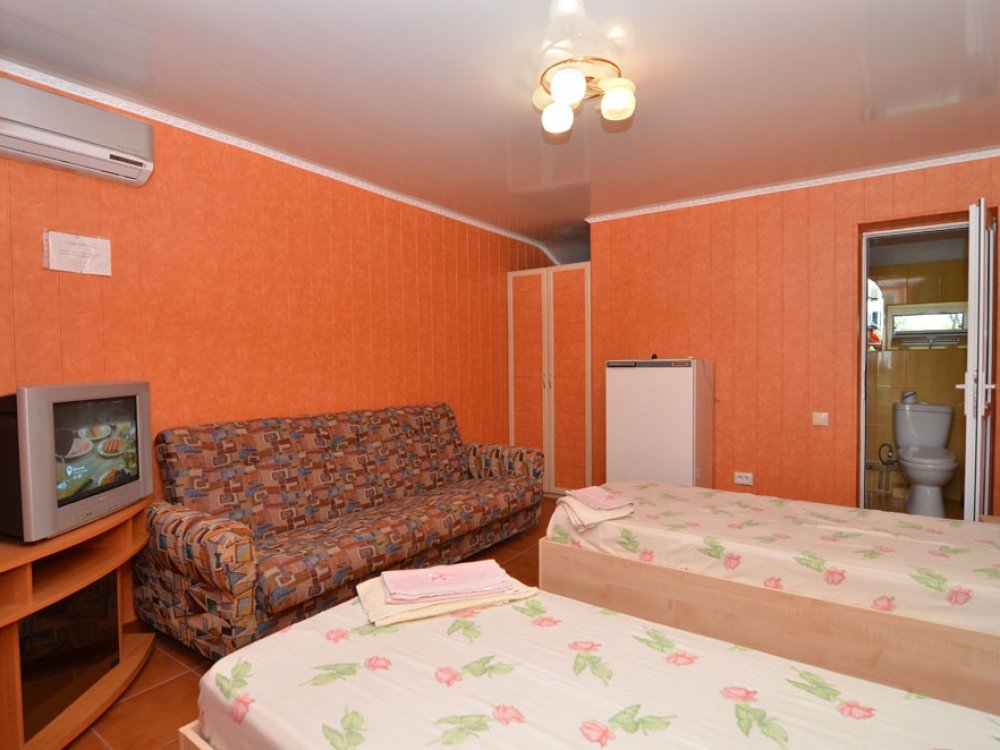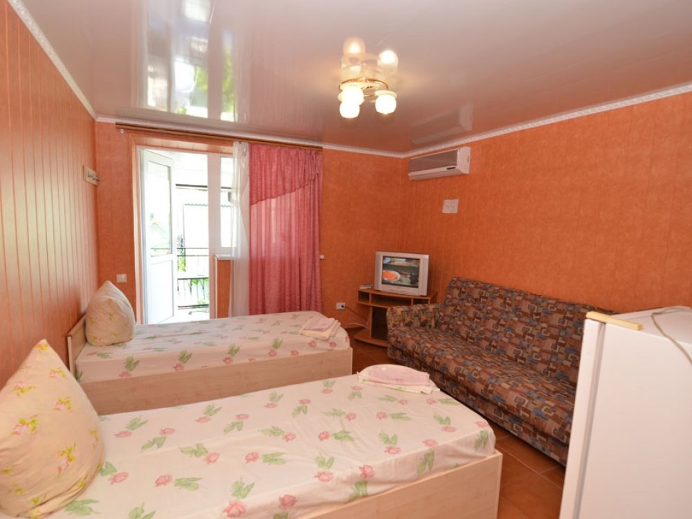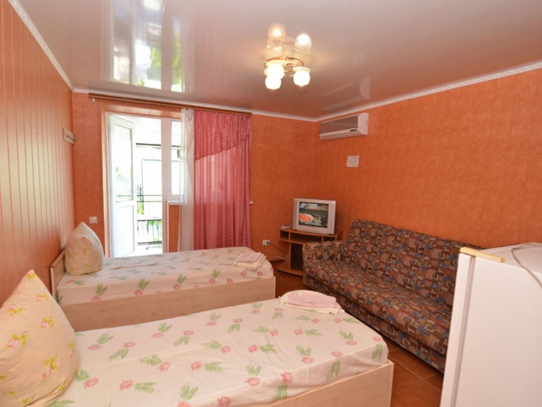 Площадь номера - 26 кв.м. Размещение: 4 человека + 2 дополнительных места. В каждом номере категории "Комфорт": все удобства (санузел с душевой кабиной) кровати (раздельные или двуспальные) кресло-кровать (может использоваться в качестве дополнительного места) шкаф и тумбочки журнальный столик телевизор холодильник кондиционер Уборка горничной - ежедневно. Смена постельного белья и полотенец - один раз в неделю или по требованию. По Вашему запросу может быть установлена детская кроватка.В номере