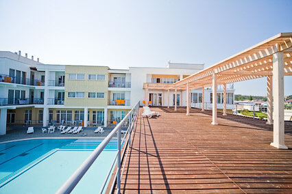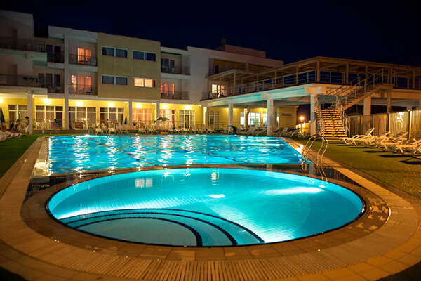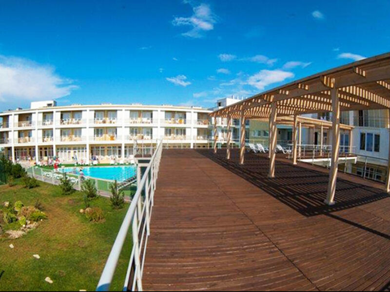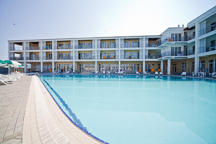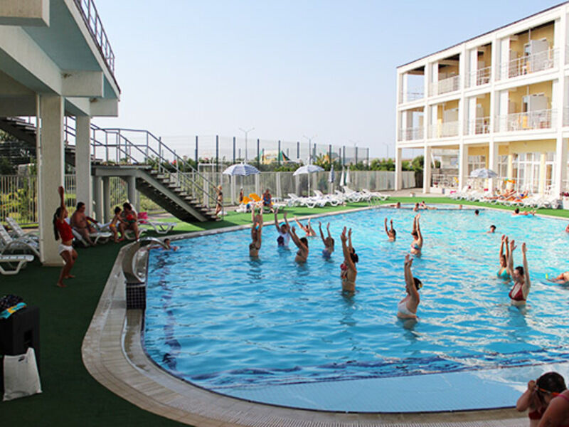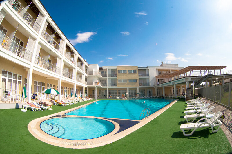 Путешествие с семьейУютный семейный отель с отличным бассейном и Детской анимациейОтдыхали семьей.За свою стоимость очень отличный отель .Номера лучше ,чем на фото(фото старые).Хороший телевизор,балконы оборудованны для отдыха,территория тоже (спорт и детские площадки)Wi-fi даже на пляже ловит.Бассейн большой ,лежаков всем хватает.Персонал весь очень вежлив и доброжелателен.Свой пляж,песочек и мелкая ракушка,крытый и с лежаками ,проводят детскую анимацию,аниматор -классная девушка.