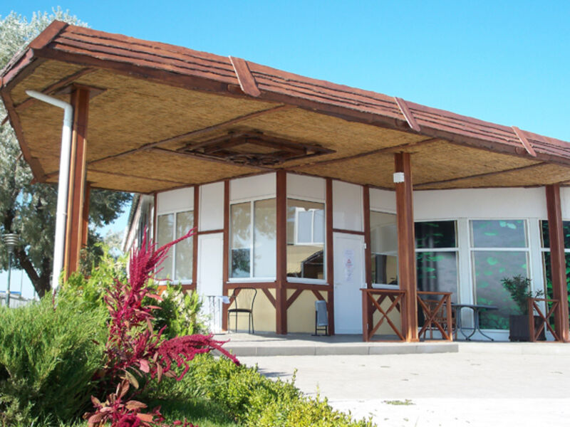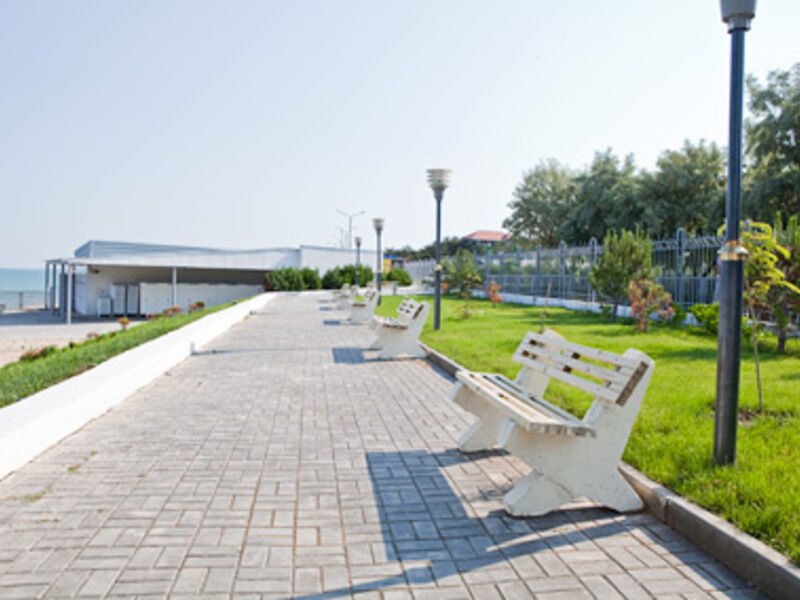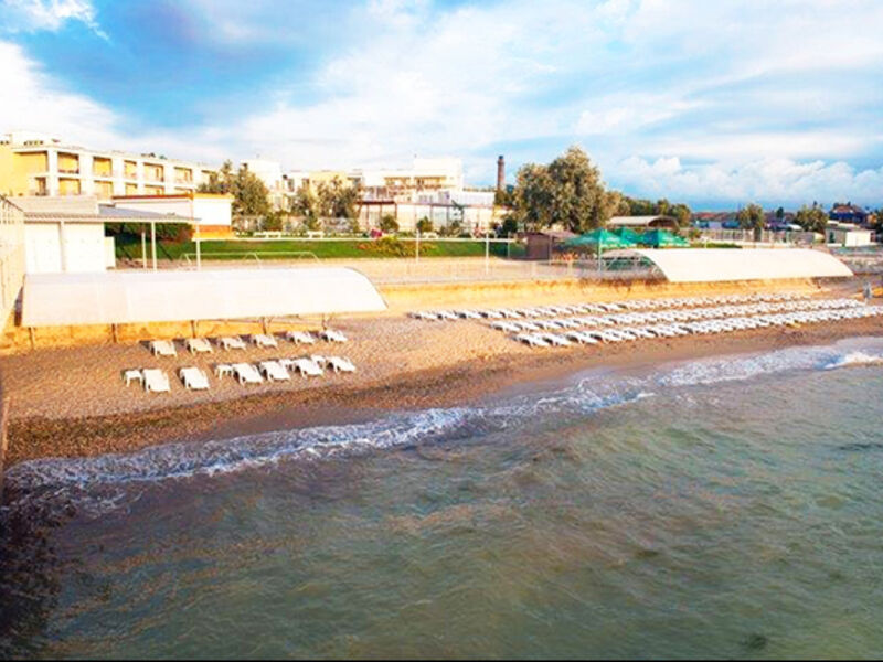 Оздоровительный комплекс находится в поселке Песчаное в Бахчисарайском районе. До аэропорта Симферополя – 55 км, море начинается уже через 50 м. На пляже открыты 2 солярия, установлены раздевалки, душевые кабины, есть где поиграть в волейбол и взять в аренду шезлонги.