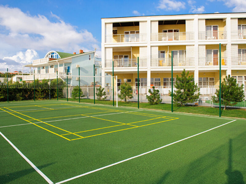 4) четыре спортплощадки (волейбольная, футбольная, баскетбольная, теннисная);