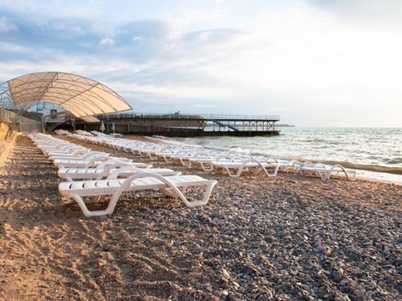 Инфраструктура: лежаки, зонтики, шезлонгиПесчаный пляж