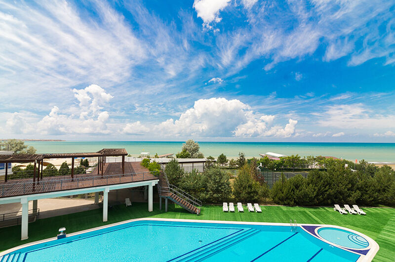 ДостоинстваЗа такую цену отличное место. Номер намного лучше чем на фотографиях, есть ТВ, балкон. Есть детская площадка. Бассейн, вокруг лежаки. Есть собственный пляж. Под навесом шезлонги. Для детей аниматор. О и интернет отличный.
