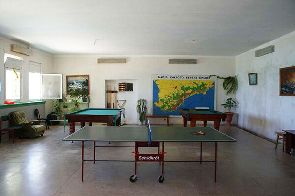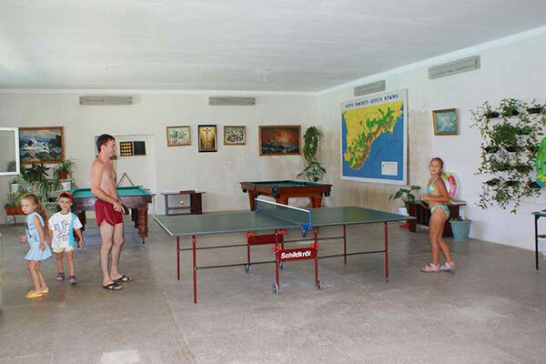 Ну а для взрослых на территории базы есть созданы площадки для мини-футбола и баскетбола, есть собственный стадион со спортивными снарядами, а также бильярд и настольный теннис.