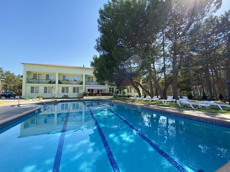 Уютные двухэтажные корпуса пансионата стоят прямо в зеленом оазисе посадок реликтовой крымской сосны, на второй береговой линии. Жилой фонд одновременно может разместить до 50 человек. В каждом номере предусмотрен кондиционер, ТВ, холодильник, индивидуальный санузел.