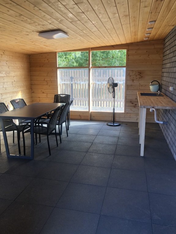 Внутри: спальные места, кухня-гостиная и вся необходимая бытовая техника. Есть тёплая закрытая терраса и мангальная зона.