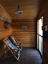 Инфраструктура: обливное ведро, душУютная баня на дровах. Красивая терраса, теплый и атмосферный предбанник, душ и ведро для обливания с холодной водой в вашем распоряжении. Для бани имеется коллекция эфирных масел, засушенная лаванда прям со двора и веники.