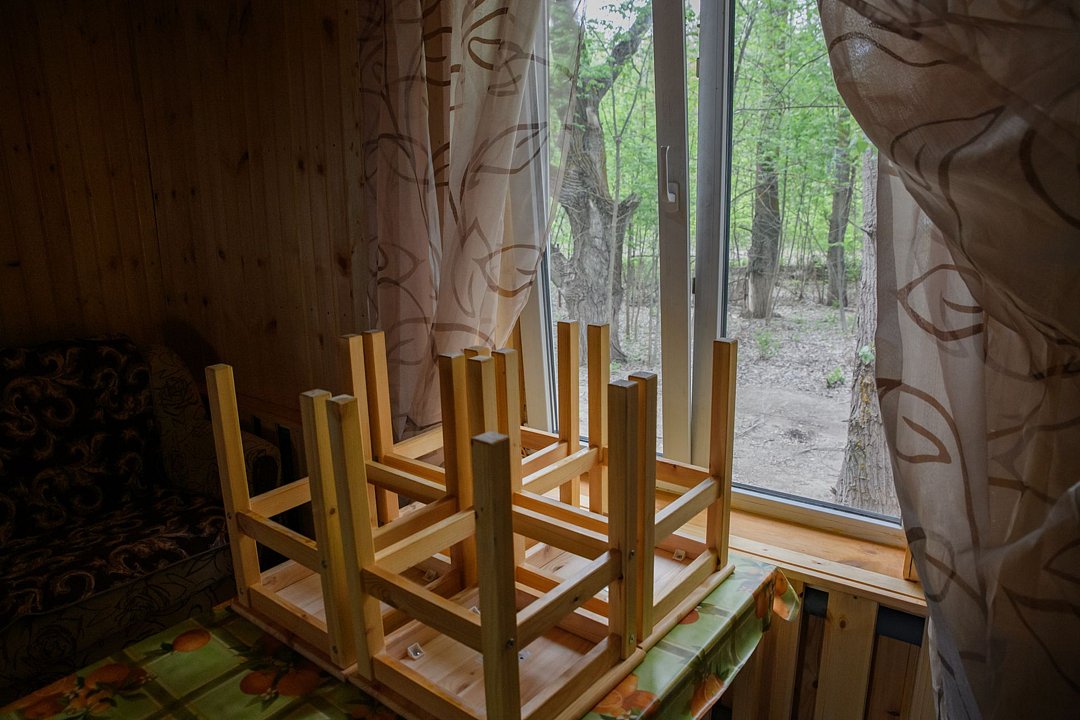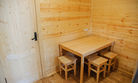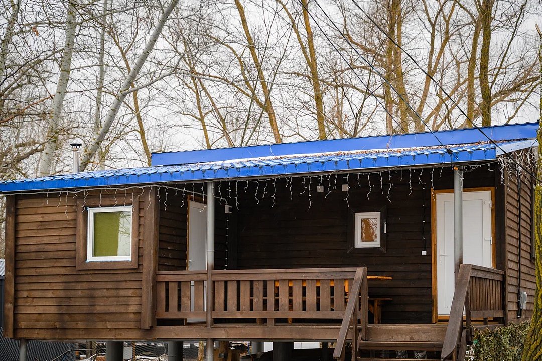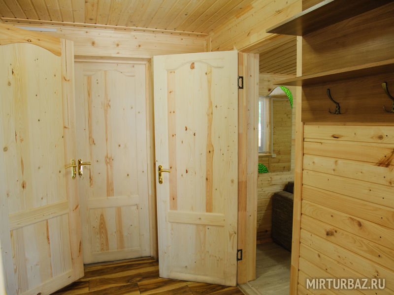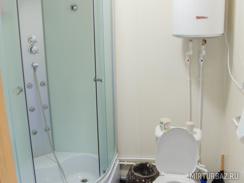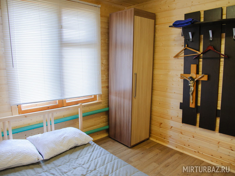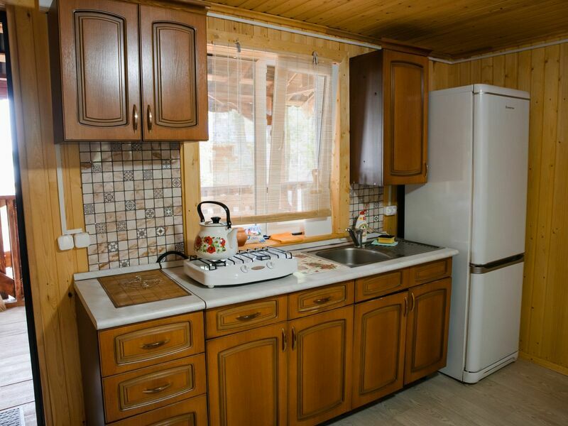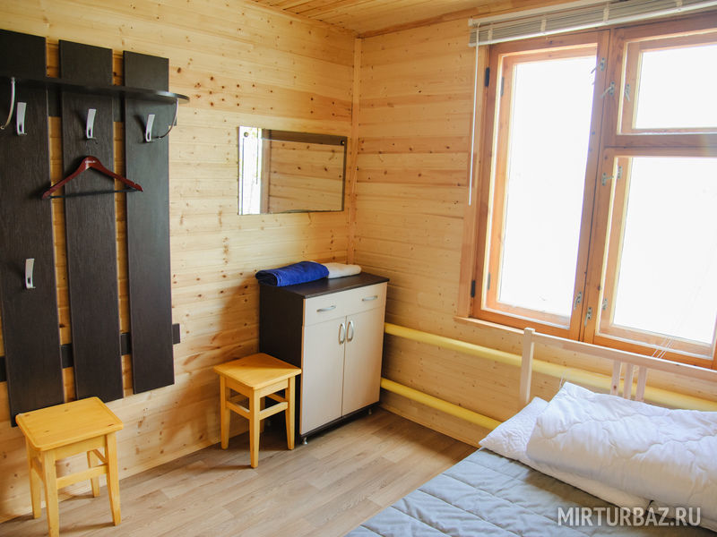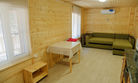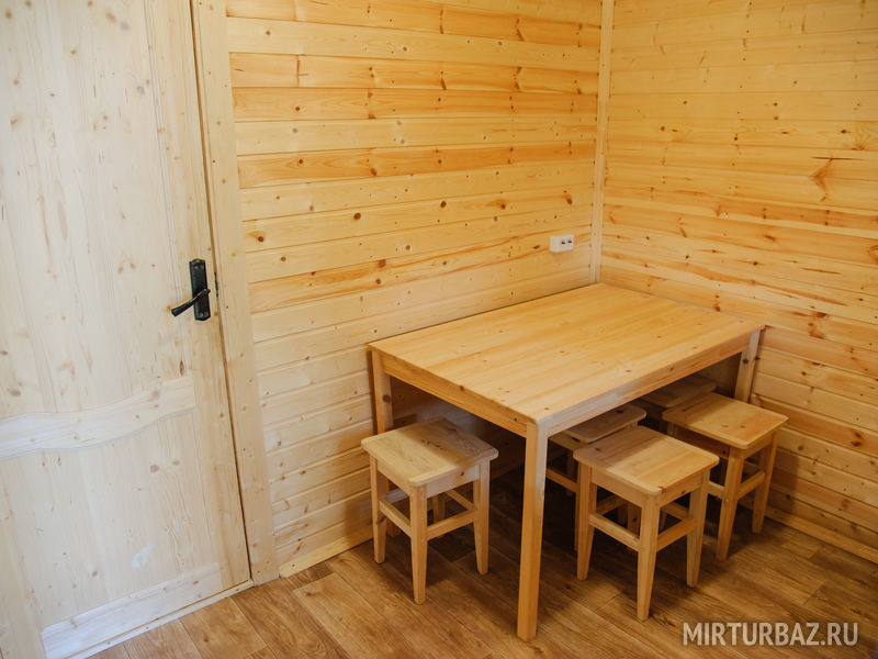 В домике есть большая комната в которой расположена кухня, диван и телевизор. В маленькой комнате две раздельные кровати. Домик отапливается.