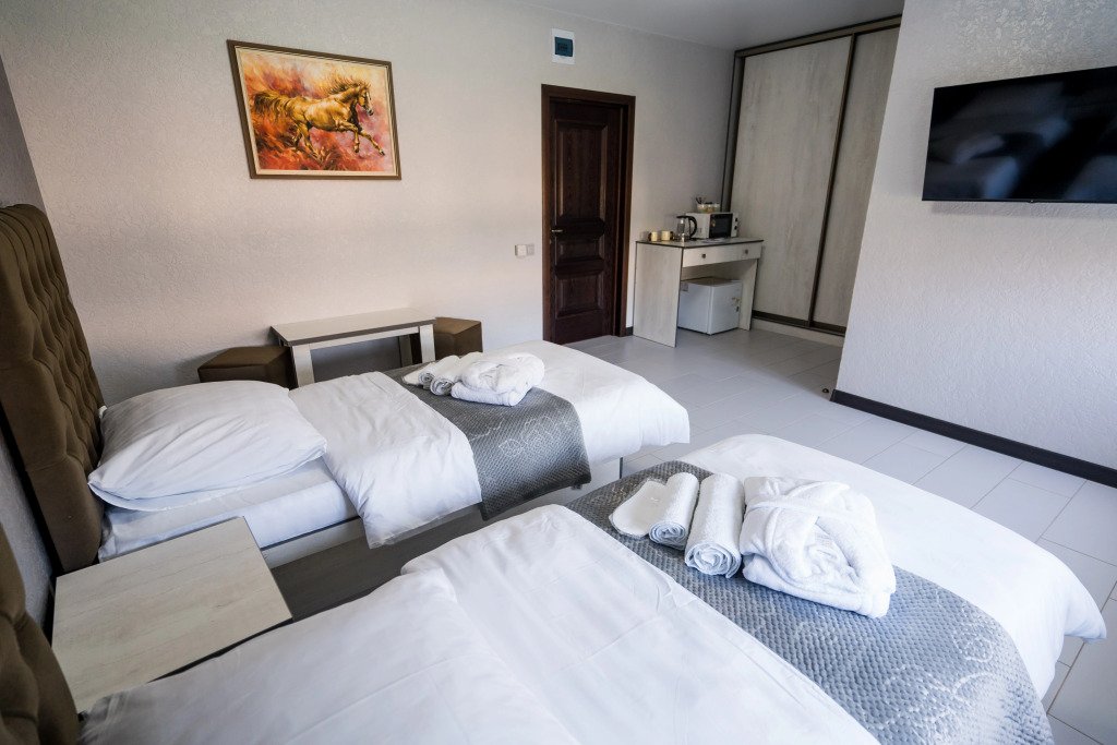 В номере вас будут ждать телевизор. Оснащение зависит от выбранной категории номера.