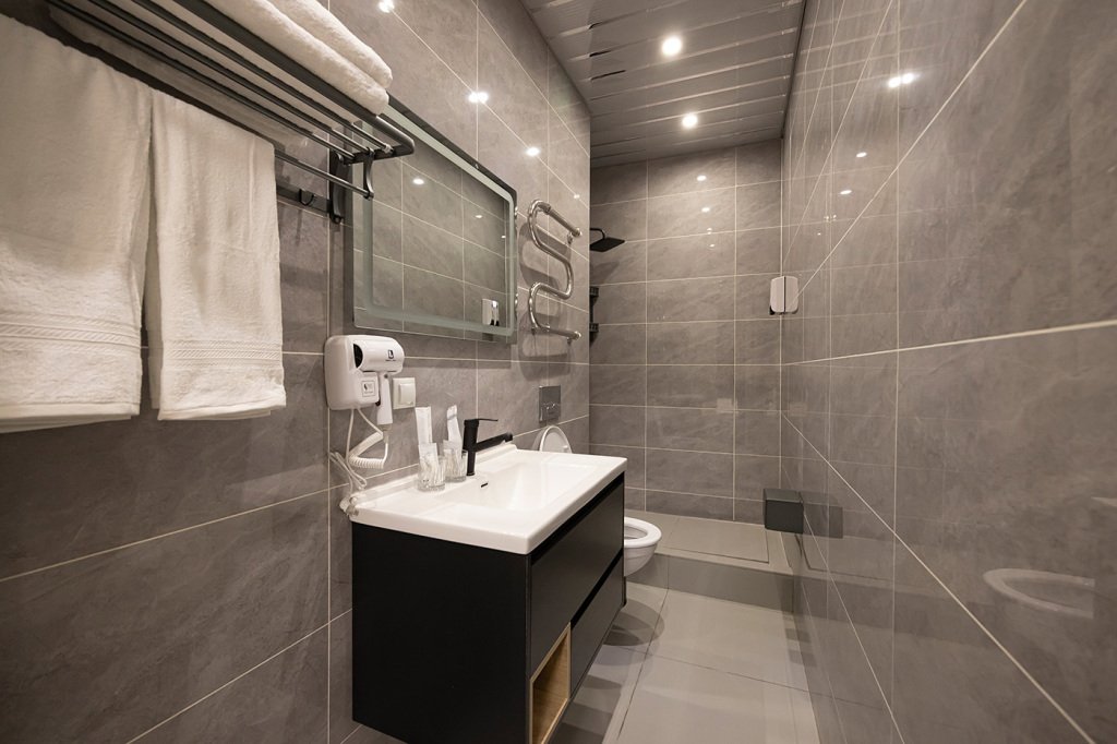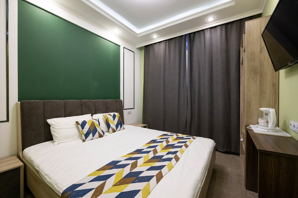 Номер уютно обставлен и оснащён необходимым, чтобы отдохнуть после долгого и насыщенного дня. Имеются телевизор и халат. Оснащение зависит от выбранной категории номера.