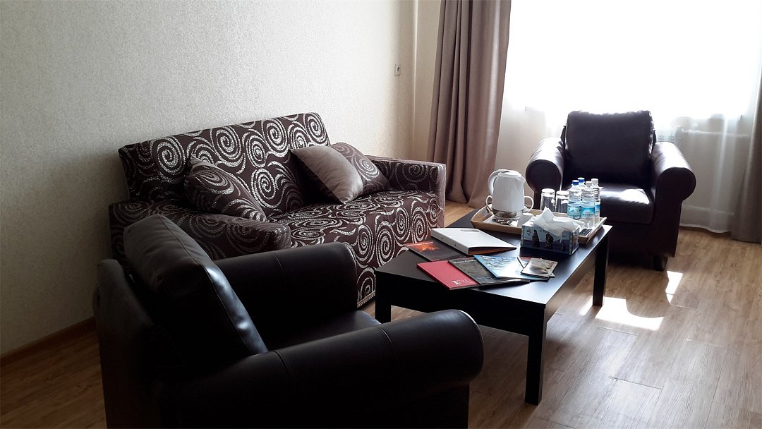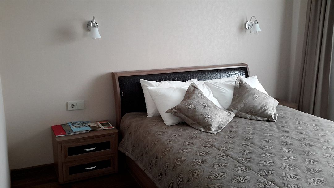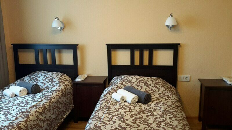 Двухэтажное здание отеля занимает благоустроенную озелененную территорию. Отель, включает в себя 21 номер и позволяет единовременно разместить более 40 человек. Номера разных уровней комфорта — от Стандарта до Сьюта, хорошо меблированы, везде есть ЖК-телевизор, а в некоторых комнатах — холодильник, электрочайник, фен.