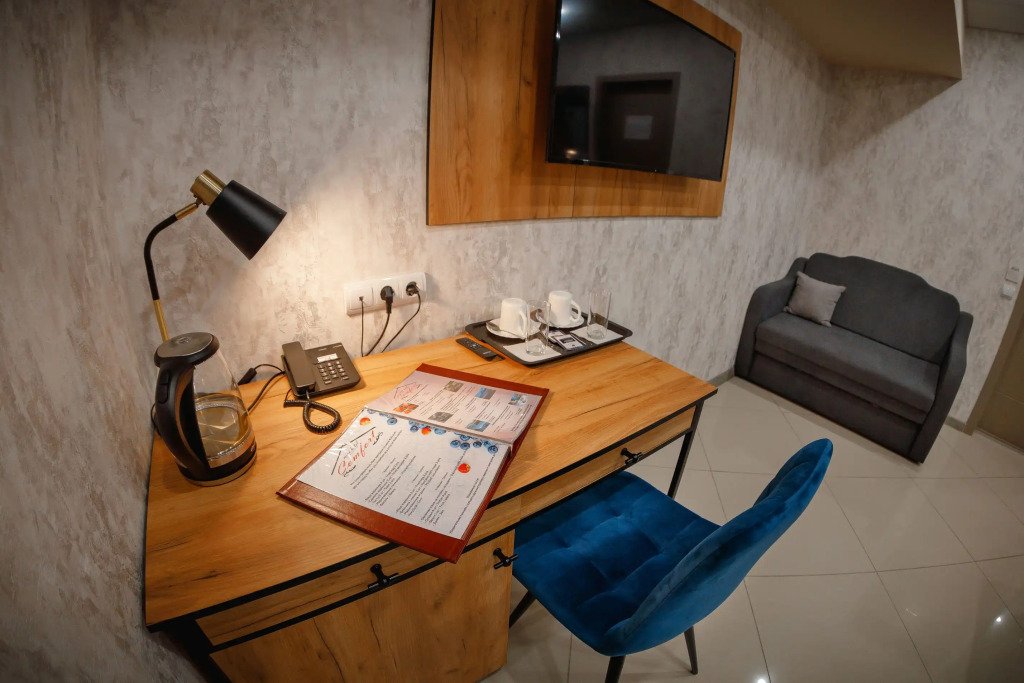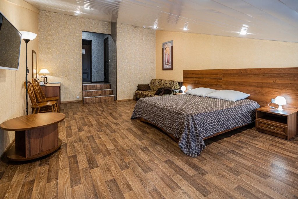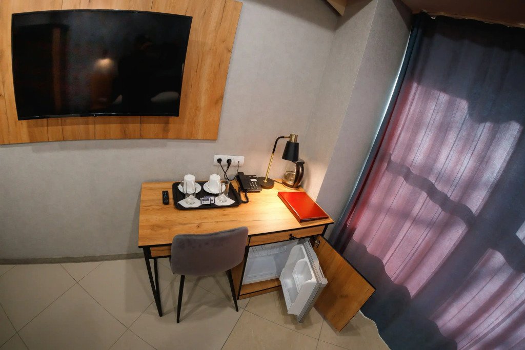 В номере гостей ждут телевизор и халат. Перечисленные услуги есть не во всех номерах.