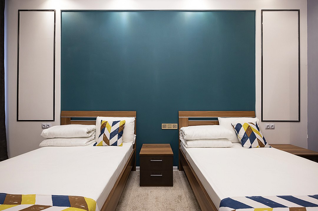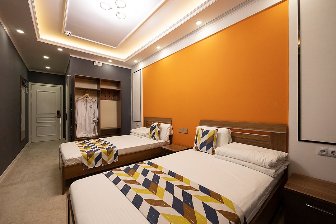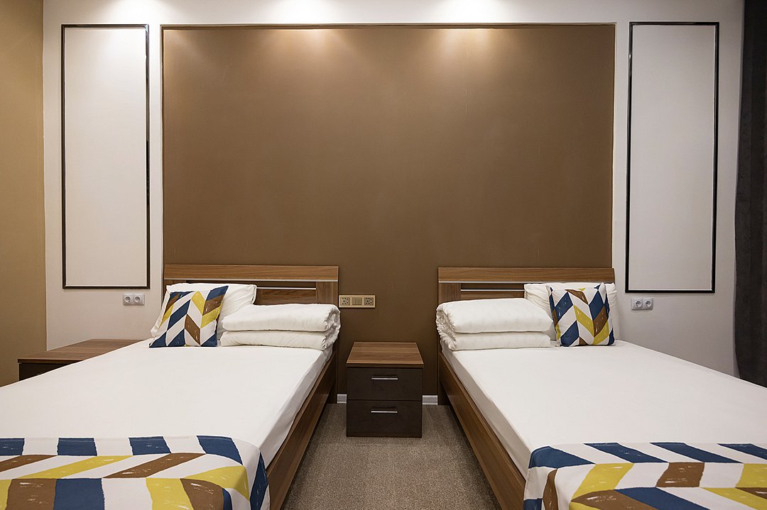 Номера оснащены согласно современному сервису и соответствуют комфортному проживанию: две раздельные кровати для отдыха, спальное место 120*200.