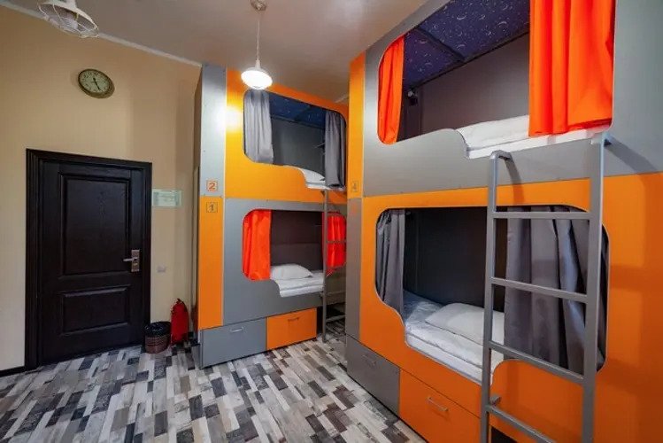 В хостеле 6 номеров: два 2-местных, два 6-местных, один 4-местный, один 10-местный. Общая вместимость - 30 мест. В 2-местных номерах - две отдельные полуторные кровати, остальные номера оснащены двухъярусными кроватями.