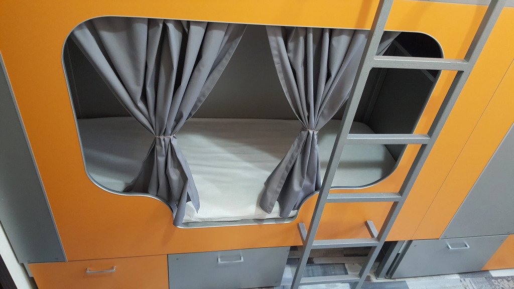 В хостеле есть отдельная гардеробная комната для верхней одежды. Удобная система открытых ячеек позволит комфортно поставить обувь.