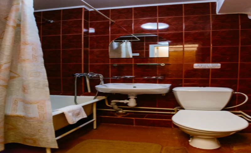 Номер эконом достаточно просторный, напоминает номера в советском санатории, но это не мешает комфортному пребыванию, поскольку все необходимое есть: душевая с маленькой ванной, телевизор, wi-fi, приличный по размерам холодильник. Рядом с отелем расположен круглосуточный супермаркет "Шамса".