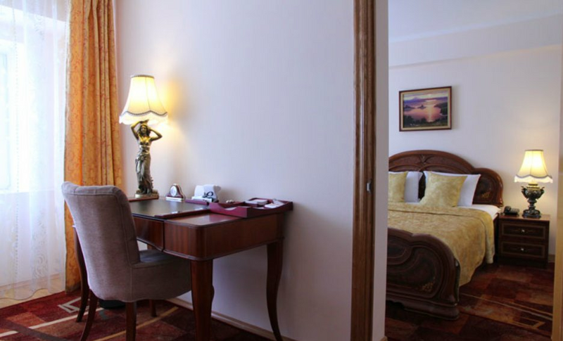 5-ти этажное здание отеля, оснащенное лифтом, рассчитано на единовременное размещение до 140 человек. Гостям предлагаются 1-но местные и 2-х местные номера категории Бизнес, Стандарт и Эконом. В номерах есть мебельный гарнитур, холодильник, телевизор, санузел с ванной или душевой.