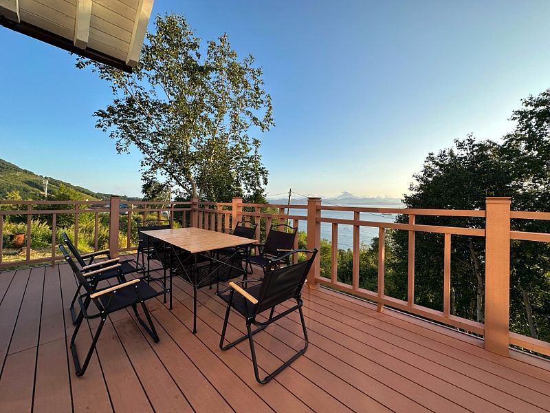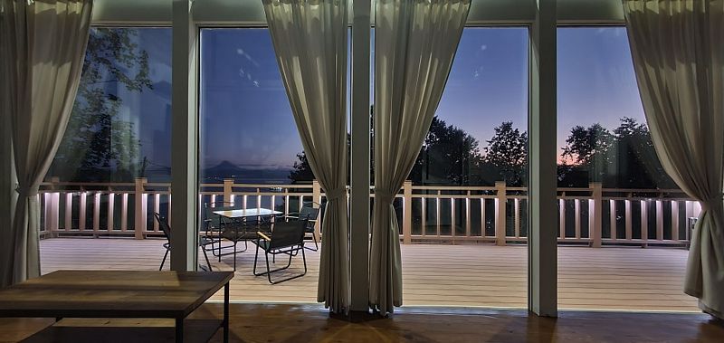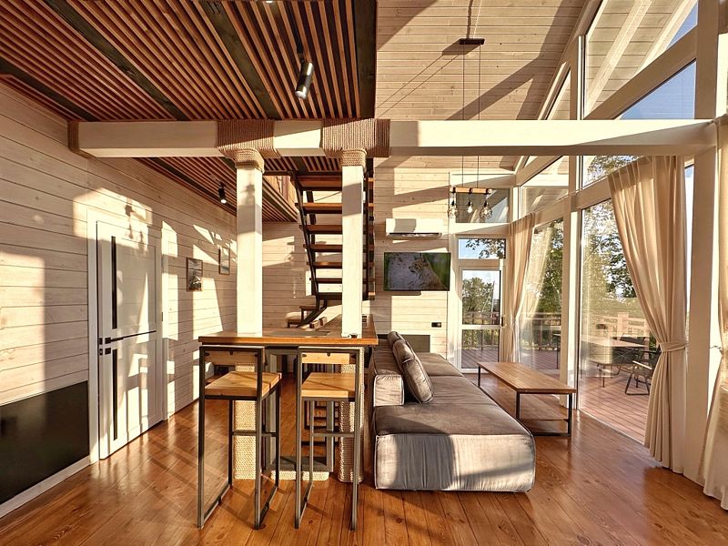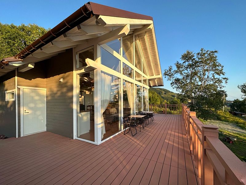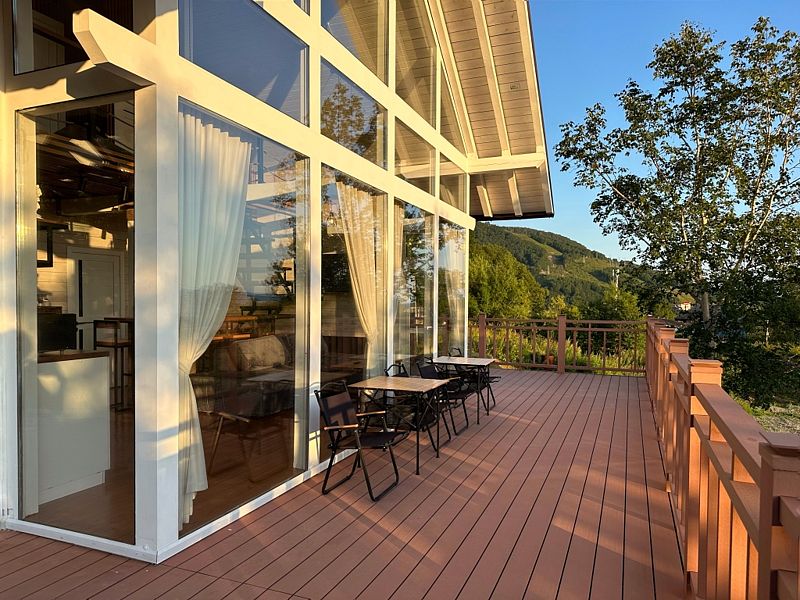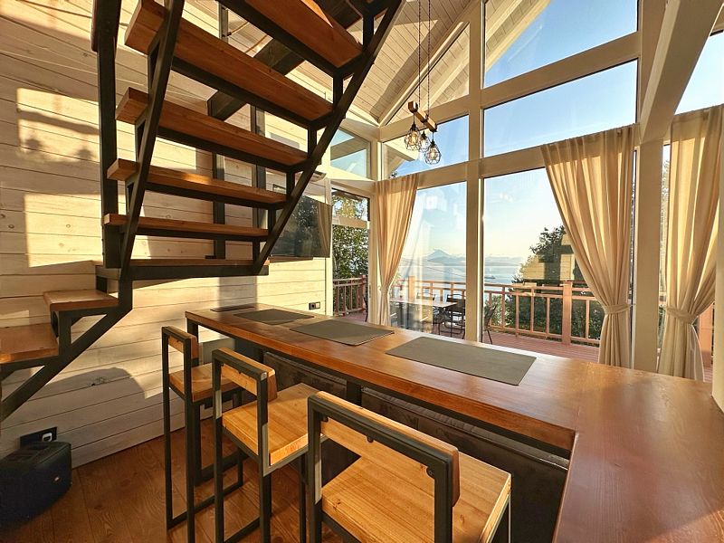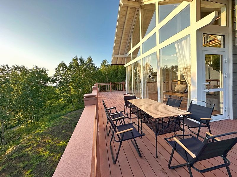 Главная особенность дома – панорамная терраса с мебелью площадью 75 кв. м, откуда открывается прекрасный вид.