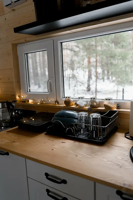 В доме созданы все условия для комфортного отдыха. Гостям доступны санузел с горячей водой, душем и теплым полом, а также предоставляются гигиенические принадлежности и фен. На кухне есть холодильник с морозилкой, индукционная плита, чайник и вся необходимая посуда. Для вашего удобства приготовлены чай, кофе, специи, питьевая вода. Также в доме есть Wi-Fi, аптечка и огнетушитель.