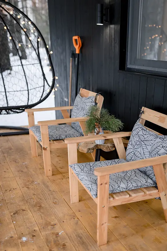 На территории вас ждет просторная веранда с уютными качелями, креслами и гамаком, где можно расслабиться, укутавшись в мягкий плед. Здесь же расположен уличный камин с шезлонгами — идеальное место для вечерних посиделок. Для любителей отдыха на свежем воздухе оборудована зона гриля с необходимой утварью.