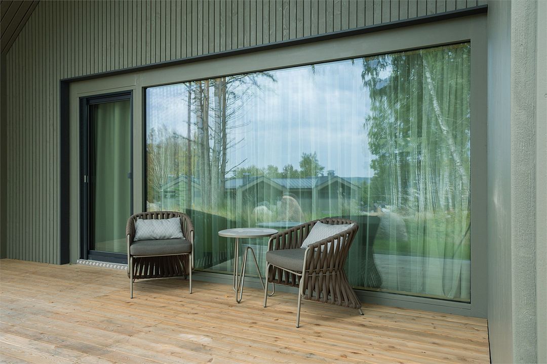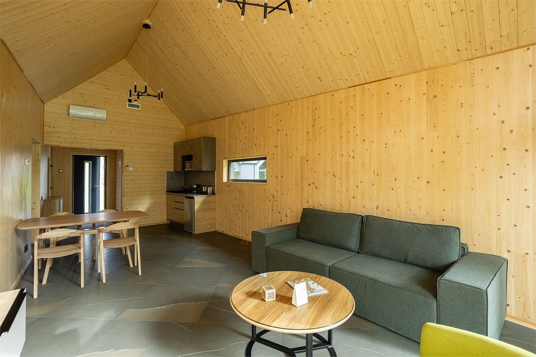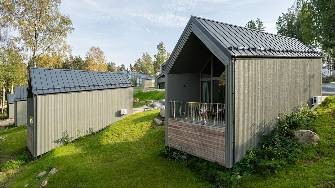 Домики и все постройки (даже хозяйственные) в одном стиле. Смотрятся гармонично и стильно. Все очень ухоженно , продуман ландшафтный дизайн у каждого домика, есть свое парковочное место, мангал. Виллы на «правильном» расстоянии друг от друга. Не муравейник как у других баз отдыха и коттеджных комплексов.