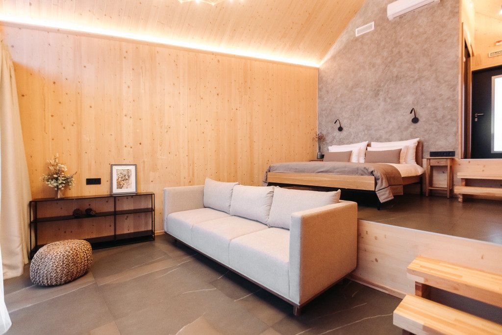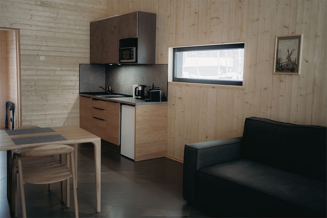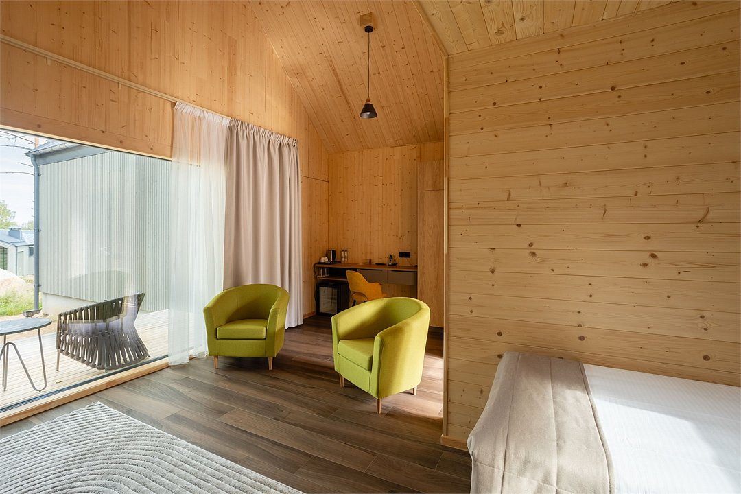 Компактный номер с лаконичным интерьером, панорамным остеклением и зоной отдыха на собственной террасе — беспроигрышный вариант для перезагрузки и спонтанного отдыха от городской суеты в окружении карельского леса.Услуги и удобства